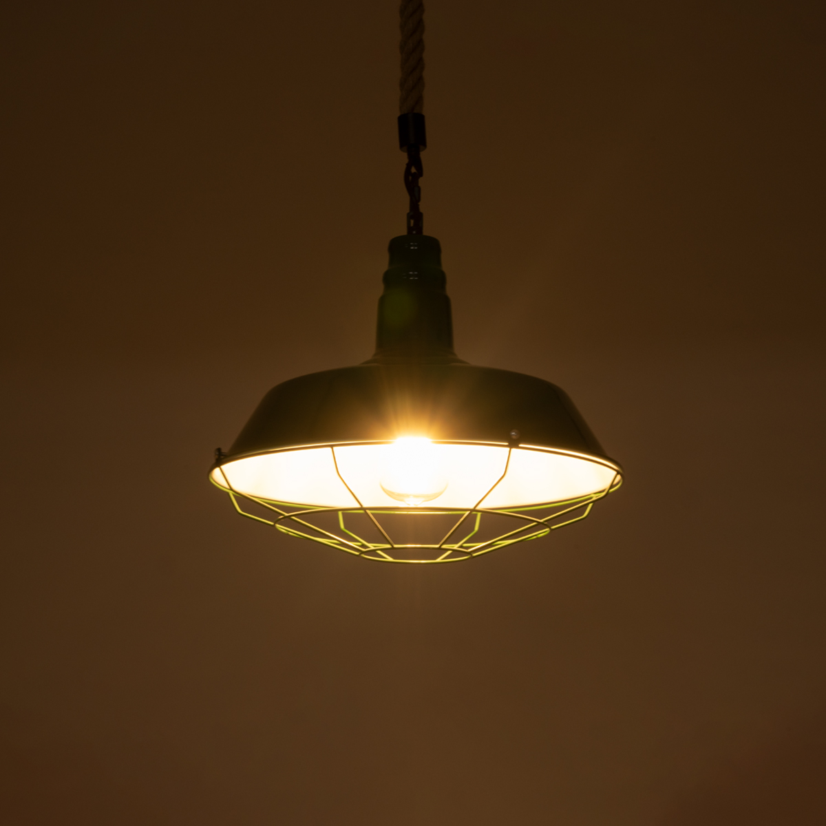 • Τεχνοτροπία Φωτιστικού: Καμπάνα Μεταλλικό Πλέγμα με Σχοινί