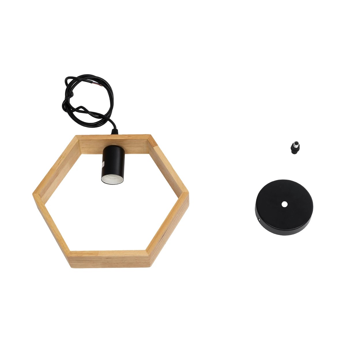 GloboStar® ELISE 01429 Μοντέρνο Κρεμαστό Φωτιστικό Οροφής Μονόφωτο Μπεζ Ξύλινο Δρυς Μ26 x Π8 x Υ25cm