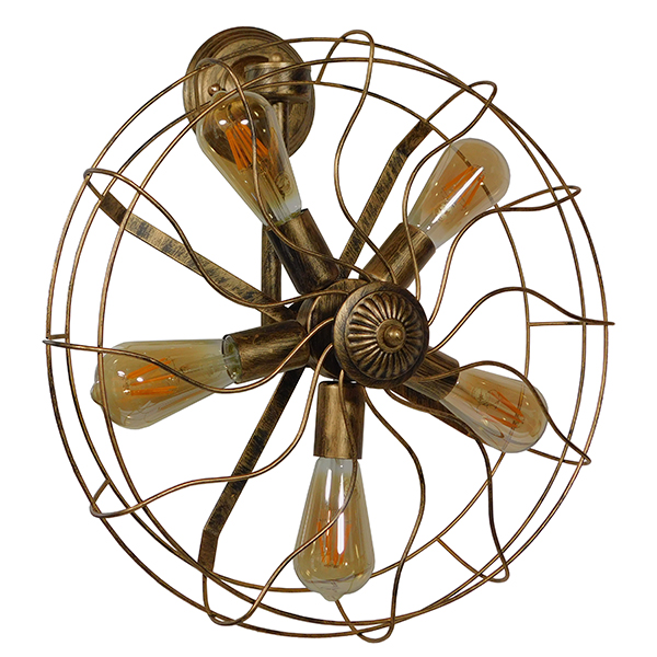 GloboStar® FAN 01381 Vintage Επιτοίχιο Φωτιστικό Απλίκα Πολύφωτο 5 x E27 IP20 Χάλκινο Μέταλλο – Μ46 x Π22 x Υ46cm