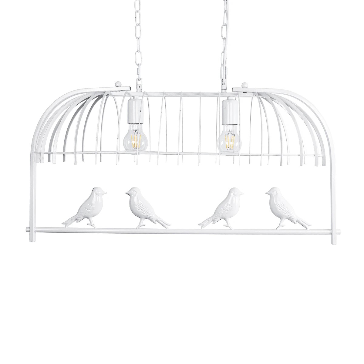 GloboStar® NEST 01644 Vintage Industrial Κρεμαστό Φωτιστικό Οροφής Δίφωτο Λευκό Μεταλλικό Πλέγμα Μ73.6 x Π37.5 x Y38cm