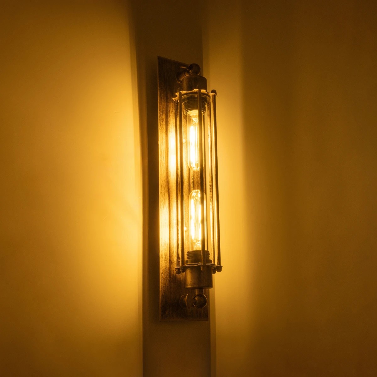 GloboStar® BESPOKE 01568 Vintage Επιτοίχιο Φωτιστικό Απλίκα Δίφωτο 2 x E27 IP20 Χρυσό Μέταλλο – Μ9.5 x Π10 x Υ47cm