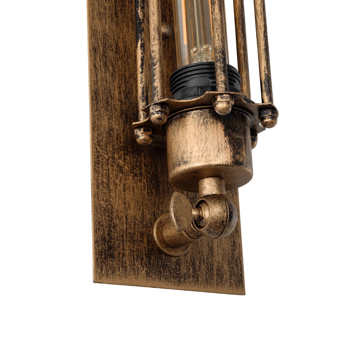 GloboStar® BESPOKE 01568 Vintage Industrial Φωτιστικό Τοίχου Απλίκα Δίφωτο Χρυσό Σκουριά Μεταλλικό Πλέγμα Μ9.5 x Π10 x Υ47cm