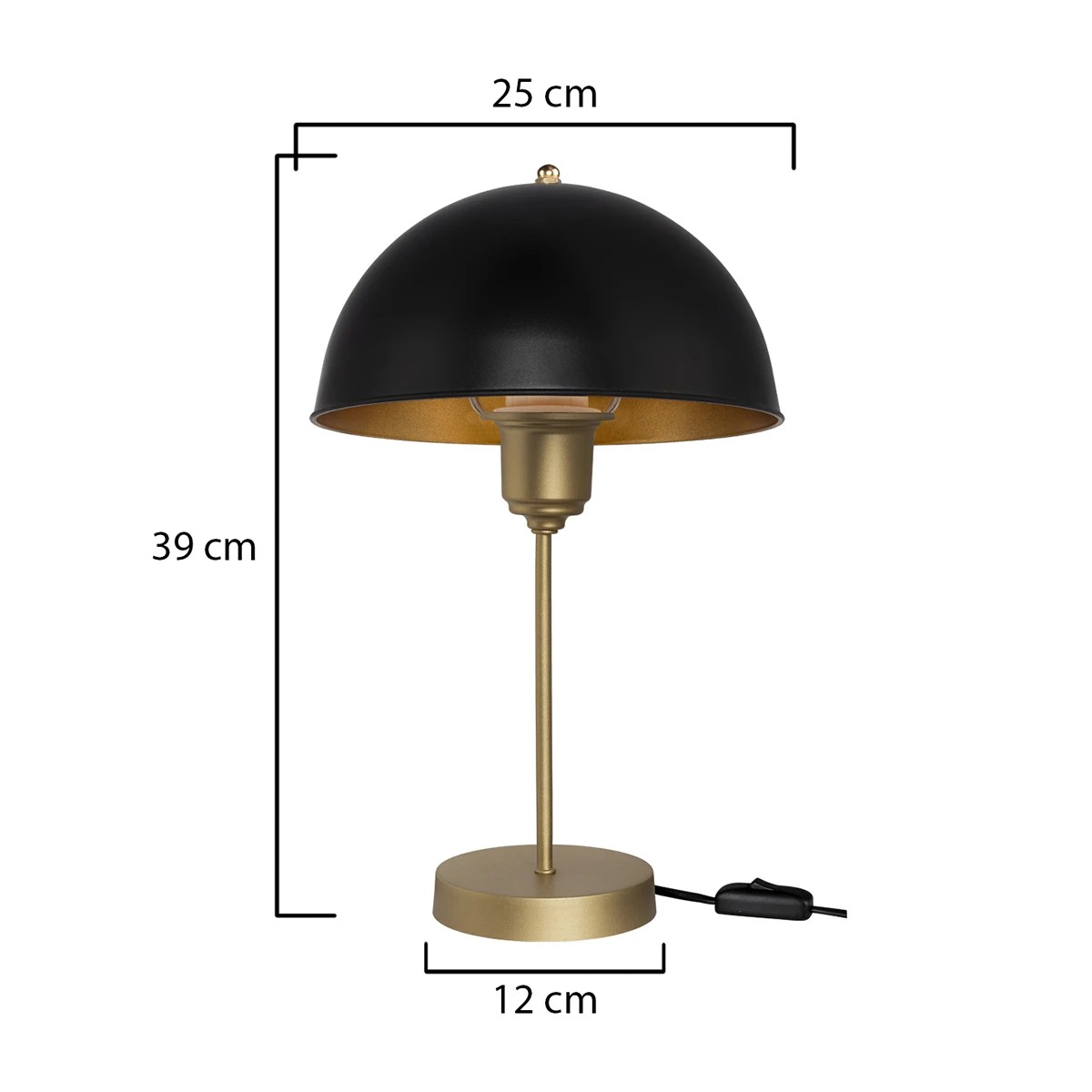 GLOBOSTAR® GAZETA 203-0305 Μοντέρνο Επιτραπέζιο Φωτιστικό Πορτατίφ με Ντουί 1 x E27 AC 220-240V IP20 – Μαύρο & Χρυσό – Μ25 x Π25 x Υ39cm