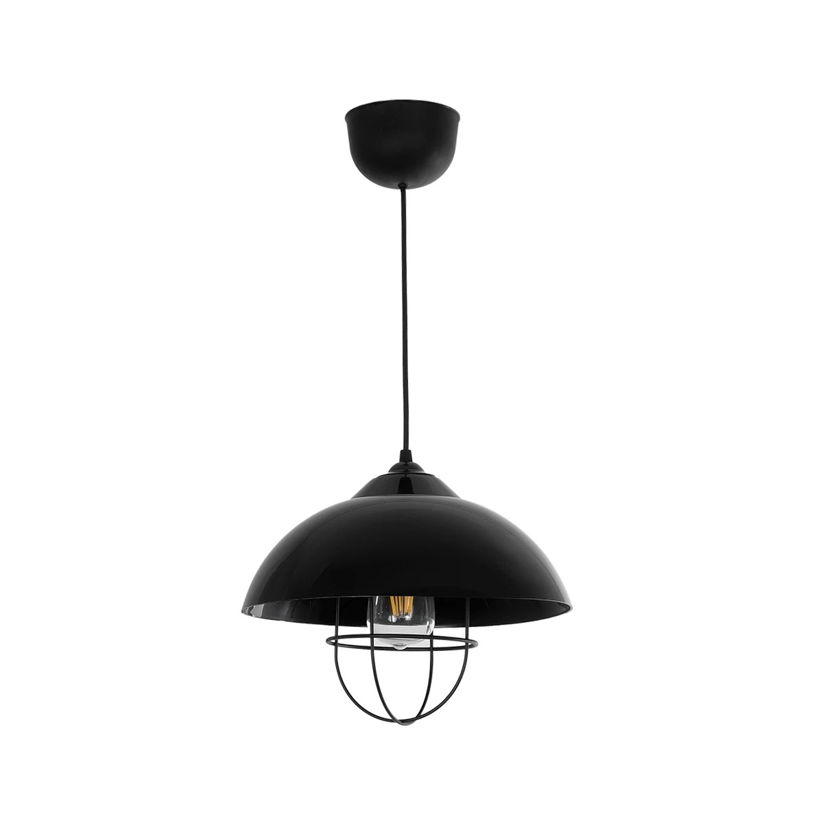 GloboStar® INDUSTRY 204-0110 Μοντέρνο Κρεμαστό Φωτιστικό Καμπάνα Μονόφωτο 1 x E27 IP20 Μαύρο Μέταλλο – Μ30 x Π30 x Υ70cm
