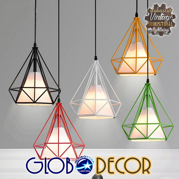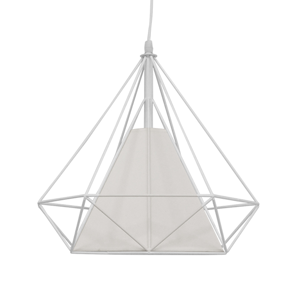 GloboStar® KAIRI 01619 Μοντέρνο Industrial Κρεμαστό Φωτιστικό Οροφής Μονόφωτο Λευκό με Ύφασμα Μεταλλικό Πλέγμα Φ38 x Υ39cm