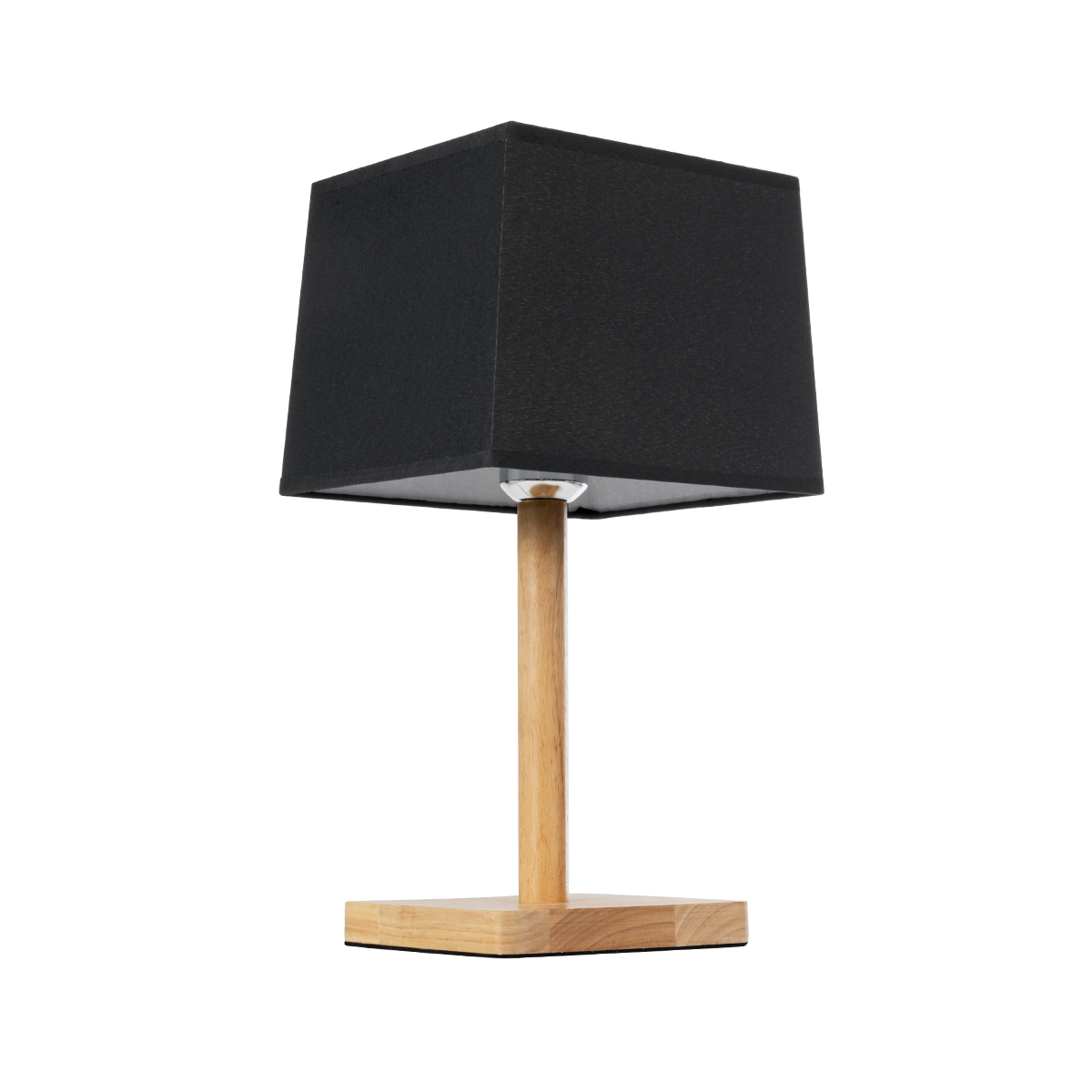 GloboStar® KOLIPE 02039 Μοντέρνο Επιτραπέζιο Φωτιστικό Μονόφωτο 1 x E27 AC220-240V IP20 – Μ20 x Π20 x Υ38cm – Μπεζ Ξύλινη Βάση με Μαύρο Πλεκτό Καπέλο