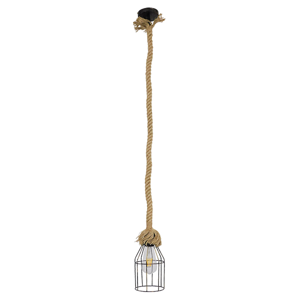 GloboStar® LAICO 01129 Vintage Κρεμαστό Φωτιστικό Οροφής Μονόφωτο Μπρούτζινο Σκουριά Μεταλλικό Πλέγμα με Μπεζ Σχοινί Φ12 x Y100cm