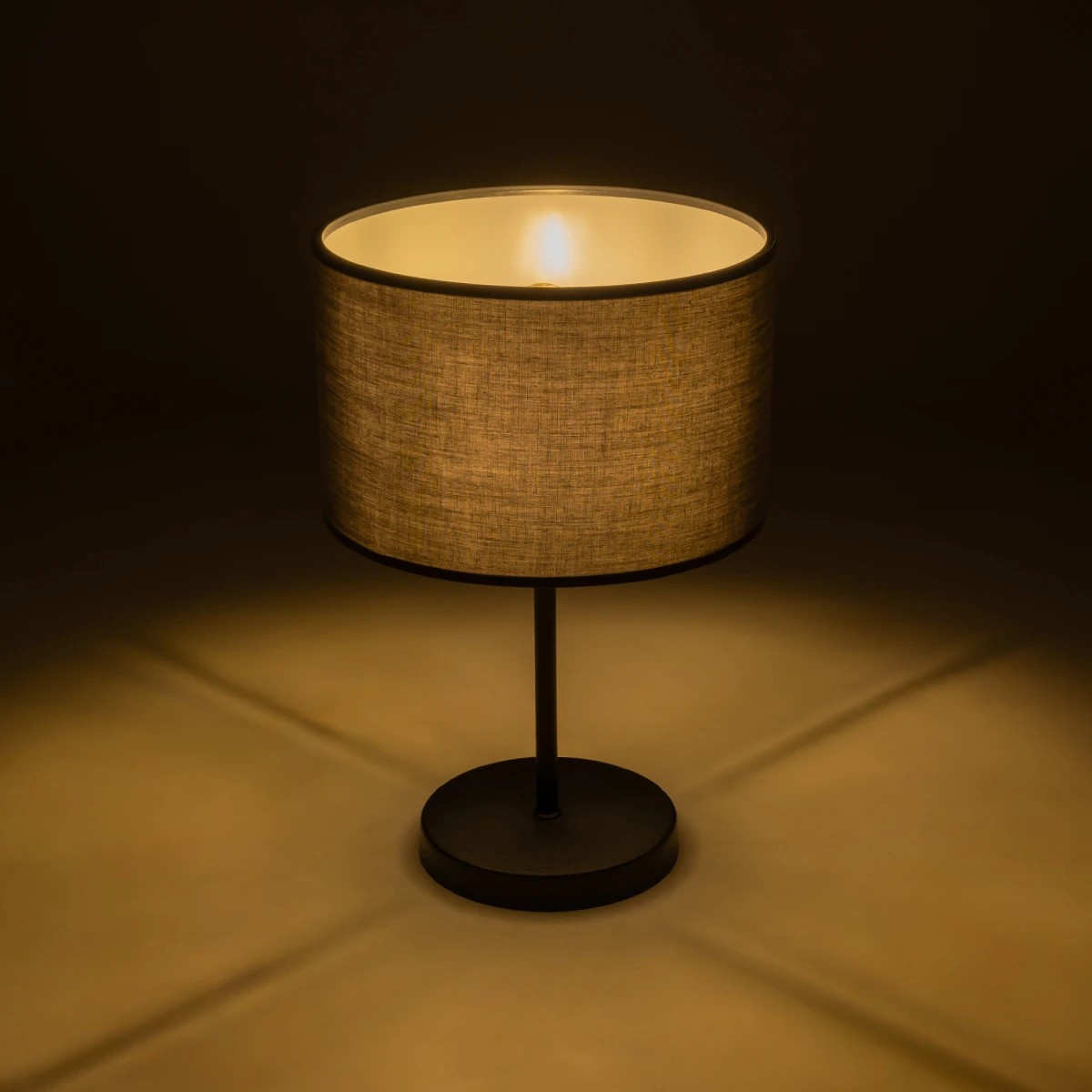 GloboStar® LARA 204-0076 Μοντέρνο Eπιτραπέζιο Φωτιστικό Μονόφωτο 1 x E27 IP20 Μαύρο Μέταλλο με Γκρι Ύφασμα – Μ24 x Π24 x Υ35cm