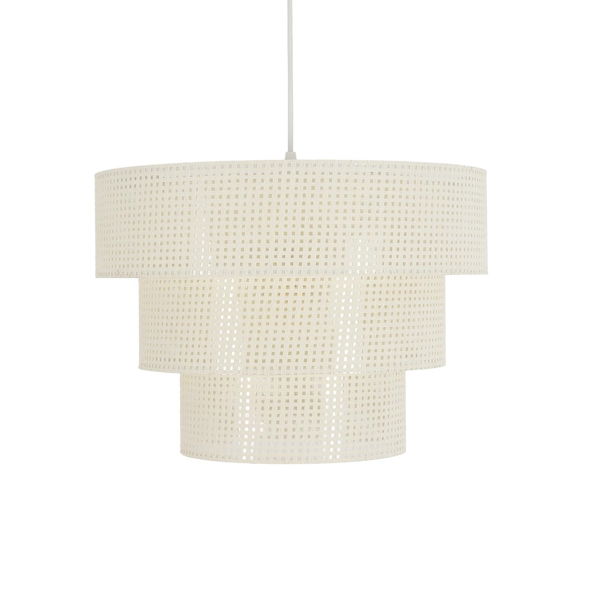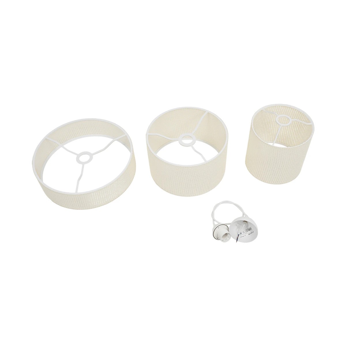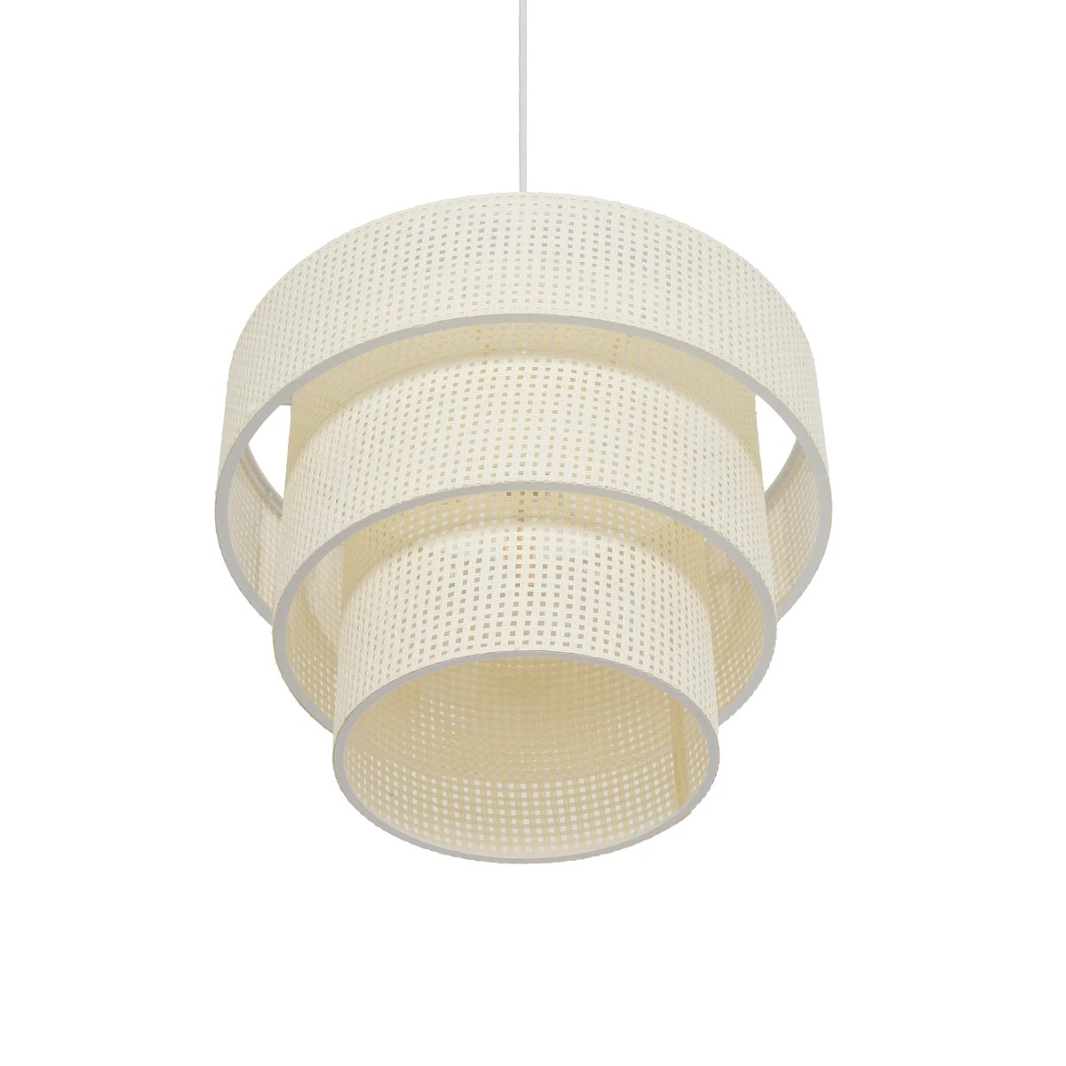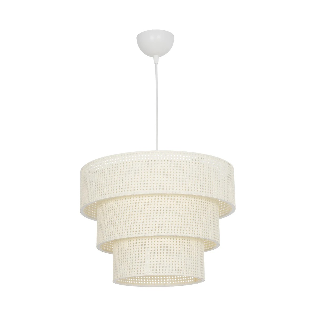GloboStar® LEVEL 203-0275 Μοντέρνο Κρεμαστό Φωτιστικό Καπέλο Μονόφωτο 1 x E27 IP20 Λευκό Διάτρητο Ύφασμα – Μ30 x Π30 x Υ90cm