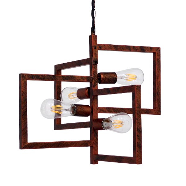 GloboStar® LOOP 00905 Μοντέρνο Industrial Κρεμαστό Φωτιστικό Οροφής Πολύφωτο Καφέ Σκουριά Μεταλλικό Μ52 x Π52 x Υ42cm