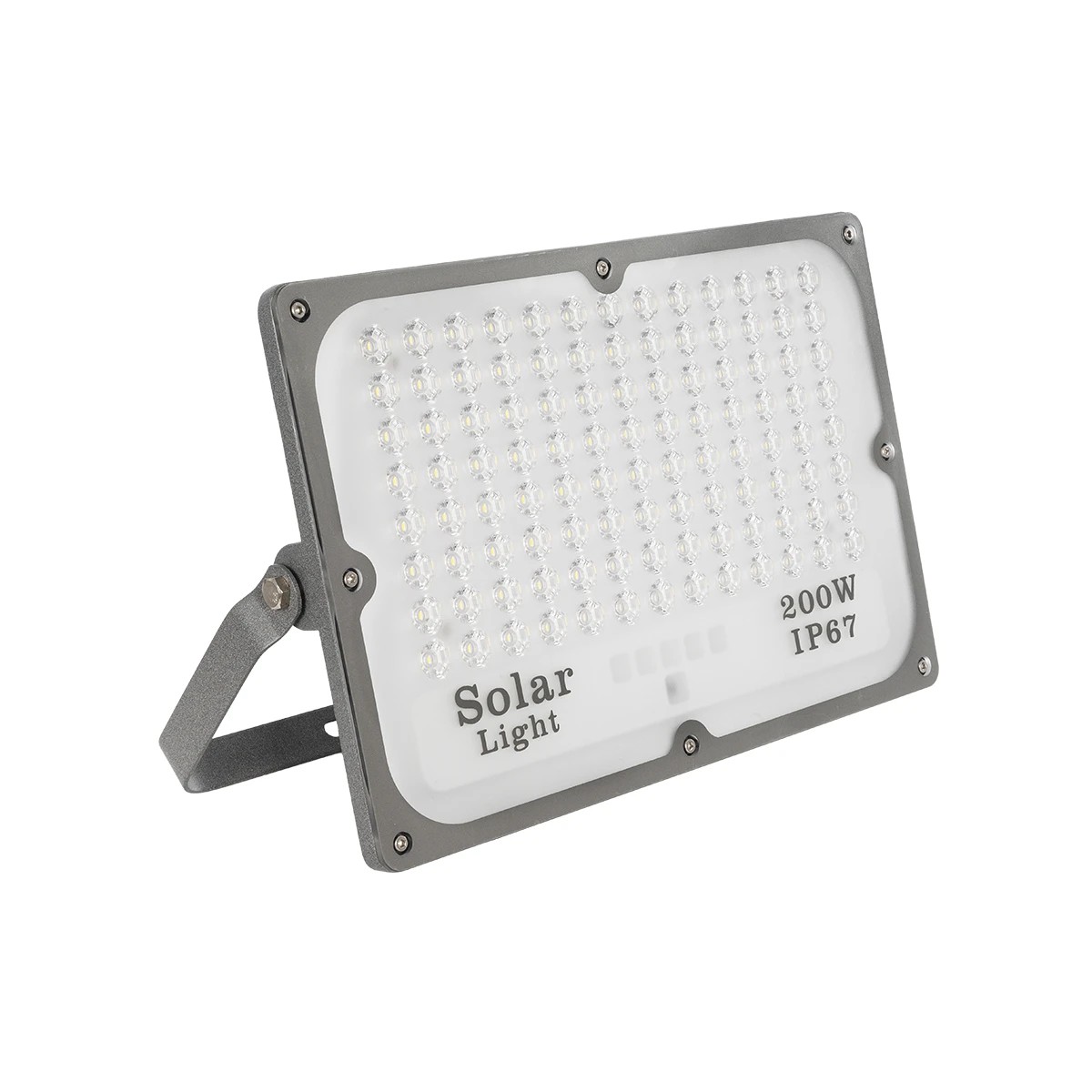 GLOBOSTAR® LUMOVOX 73068 Προβολέας LED 200W 10000lm 120° DC 5V με Φωτοβολταϊκό Panel 5V 12W & Επαναφορτιζόμενη Μπαταρία Li-ion 3.2V 10000mAh Αδιάβροχο IP65 Ψυχρό Λευκό 6000K – 180 x SMD2835 Sanan Chip – Γκρι Ανθρακί – Μ29 x Π0 x Υ19cm – 2 Χρόνια Εγγύηση