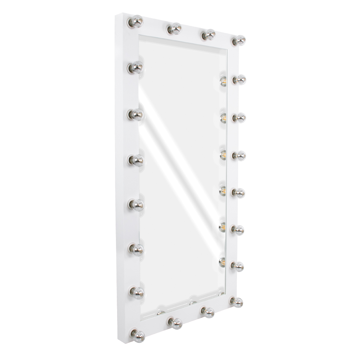 GloboStar® MAKEUP MIRROR-160×80-4 Μοντέρνος Καθρέπτης Μακιγιάζ με Πλαίσιο Φυσικού Ξύλου με Διακόπτη On/Off 20 x E27 AC220-240V – Μ80 x Π7 x Υ160cm – Λευκή Λάκα