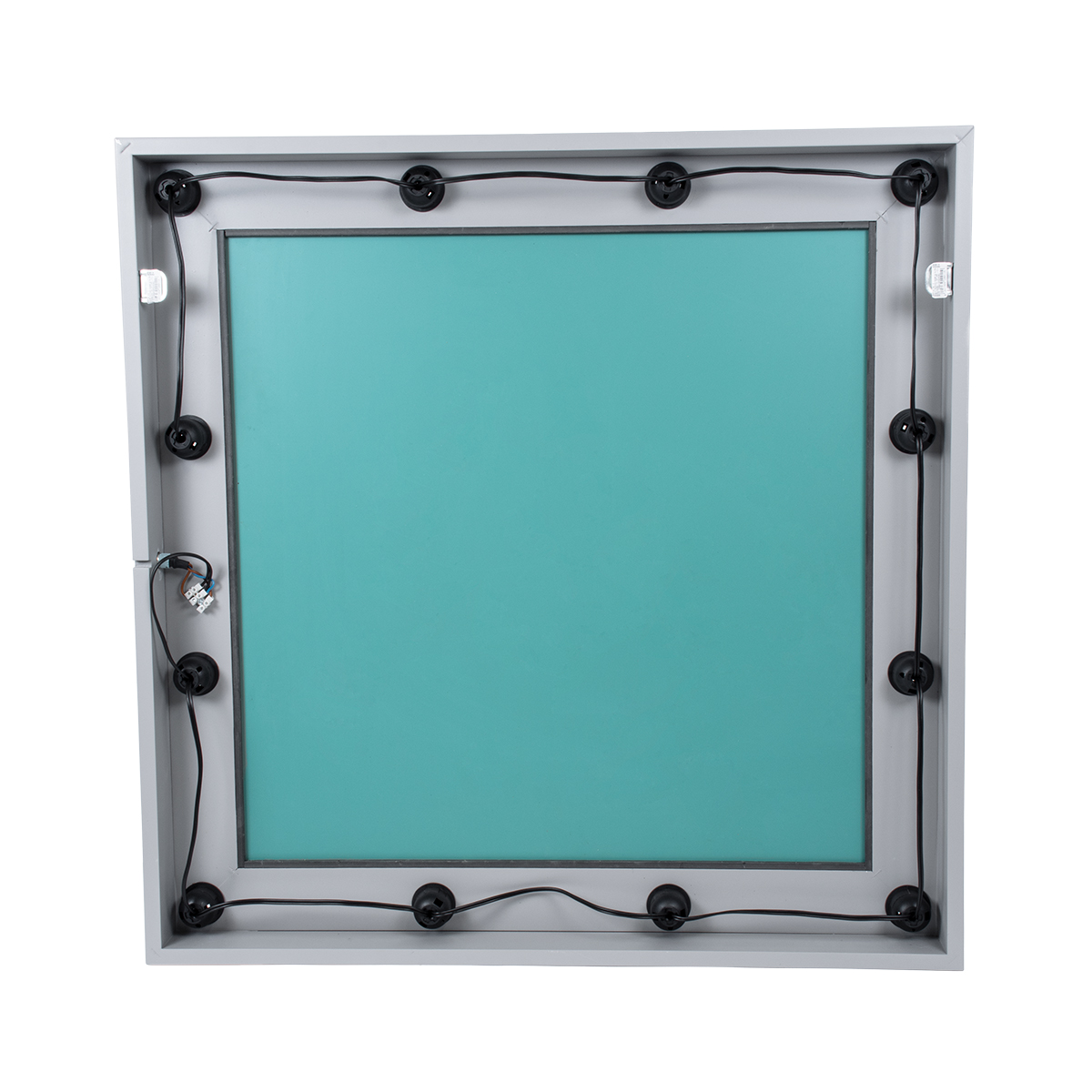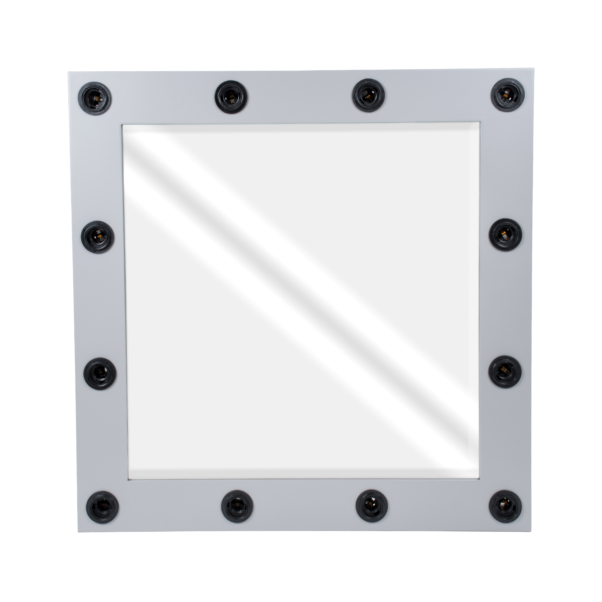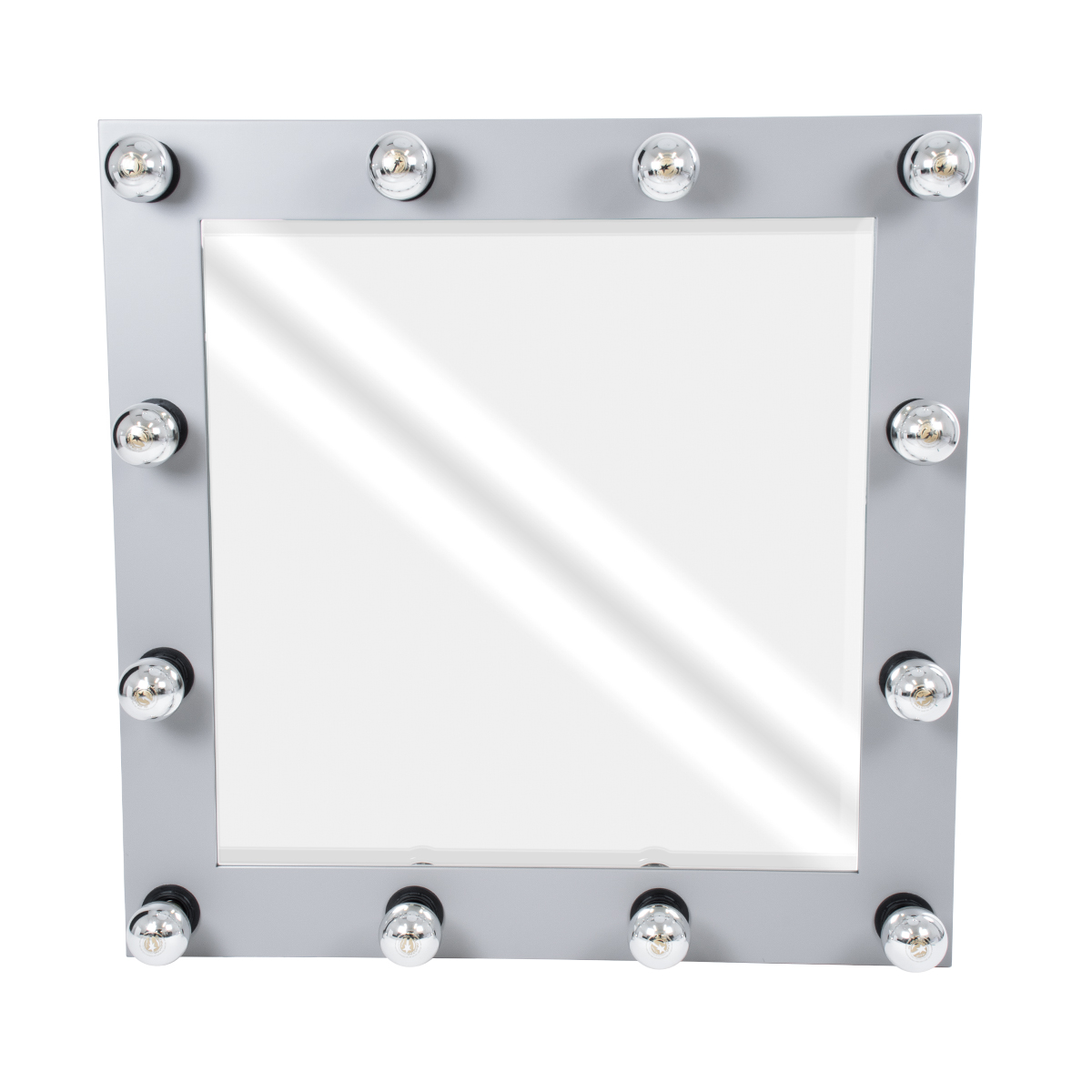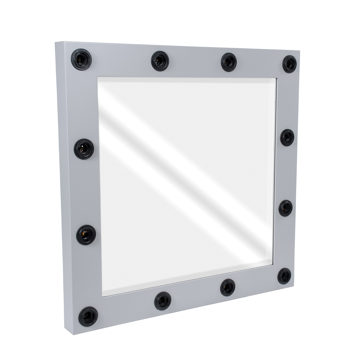 GloboStar® MAKEUP MIRROR-80×80-3 Μοντέρνος Καθρέπτης Μακιγιάζ με Πλαίσιο Φυσικού Ξύλου με Διακόπτη On/Off 12 x E27 AC220-240V – Μ80 x Π7 x Υ80cm – Γκρι Τσιμέντου