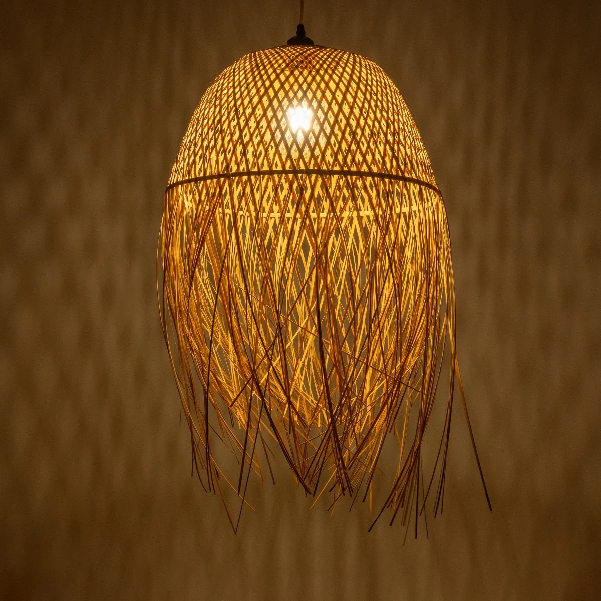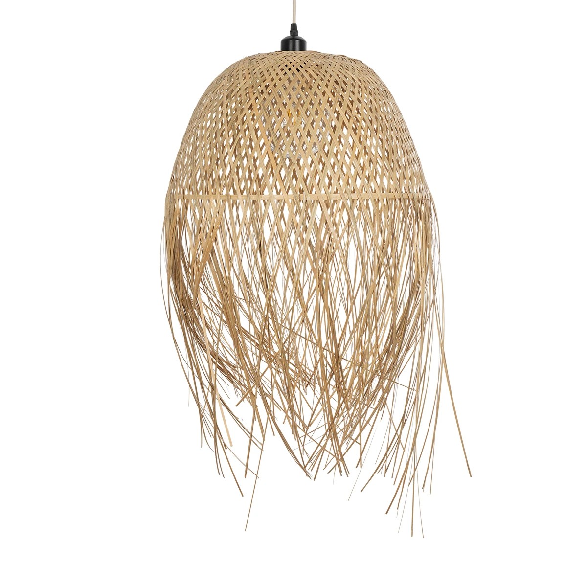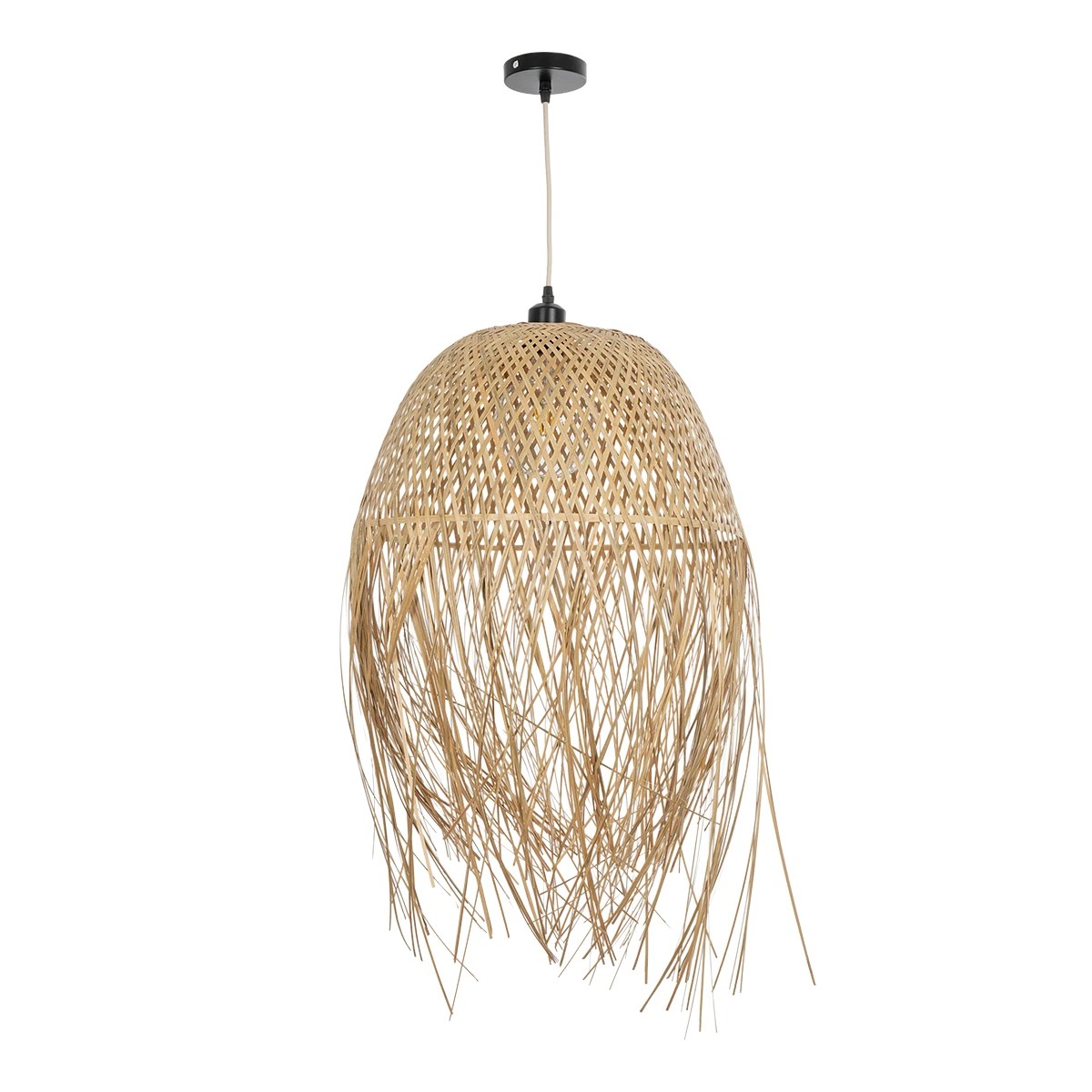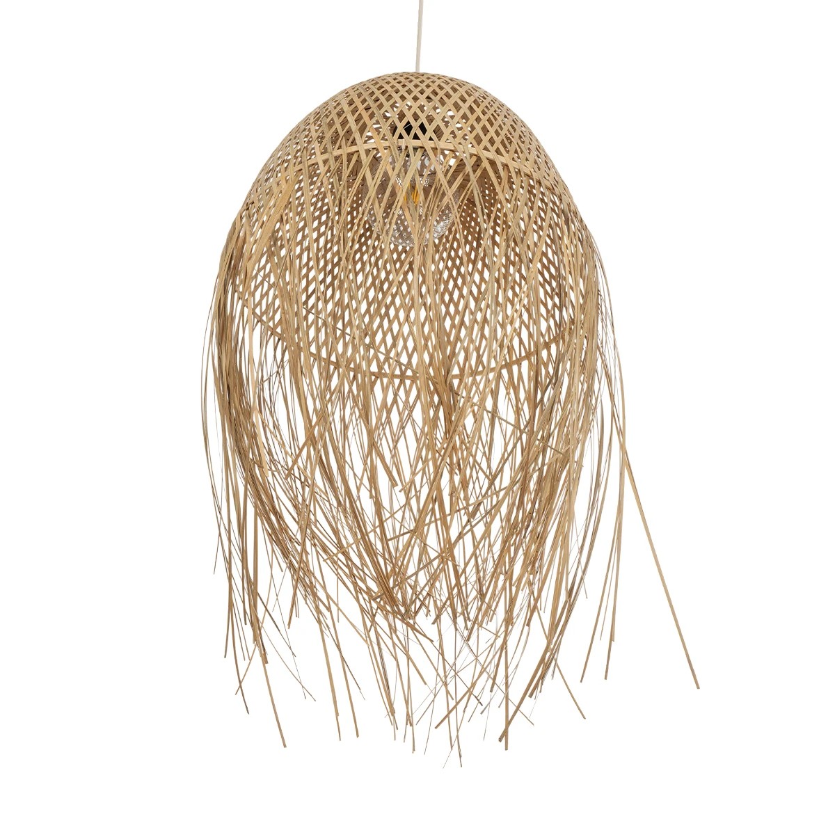 GloboStar® MANILA 01714 Boho Κρεμαστό Φωτιστικό Πλέγμα Μονόφωτο 1 x E27 IP20 Μπεζ Ξύλο – Μ45 x Π45 x Υ60cm