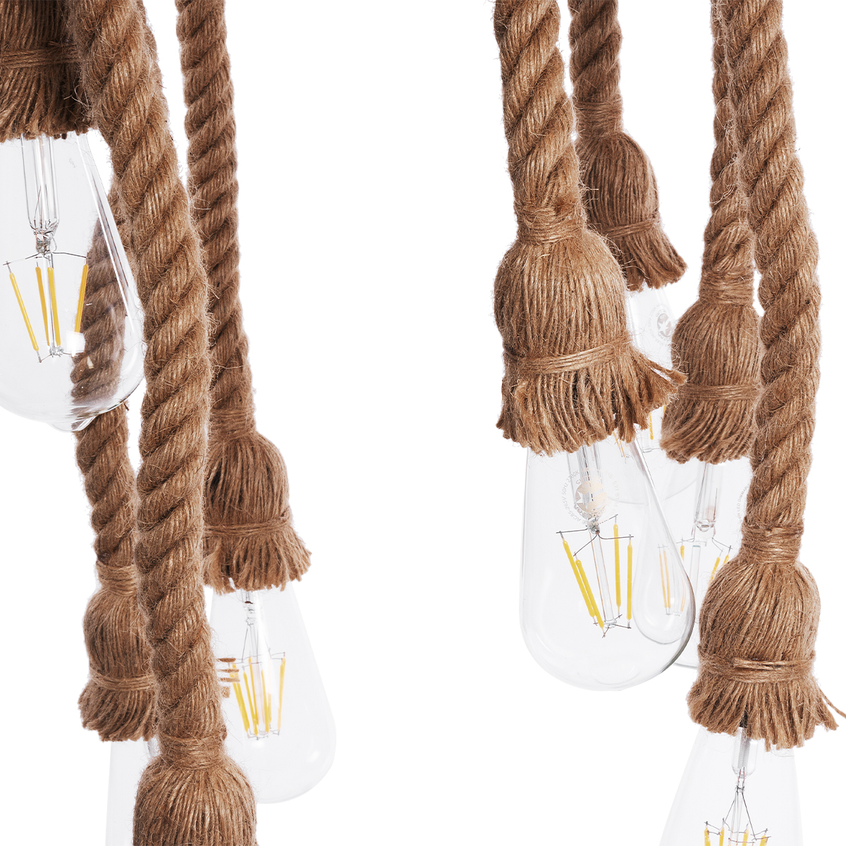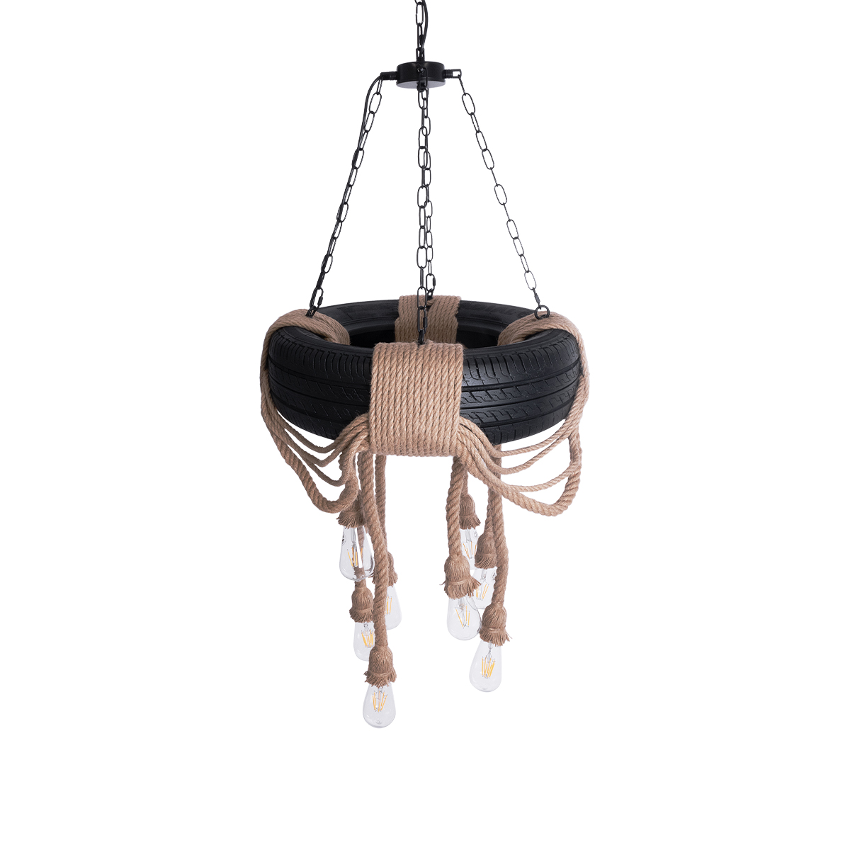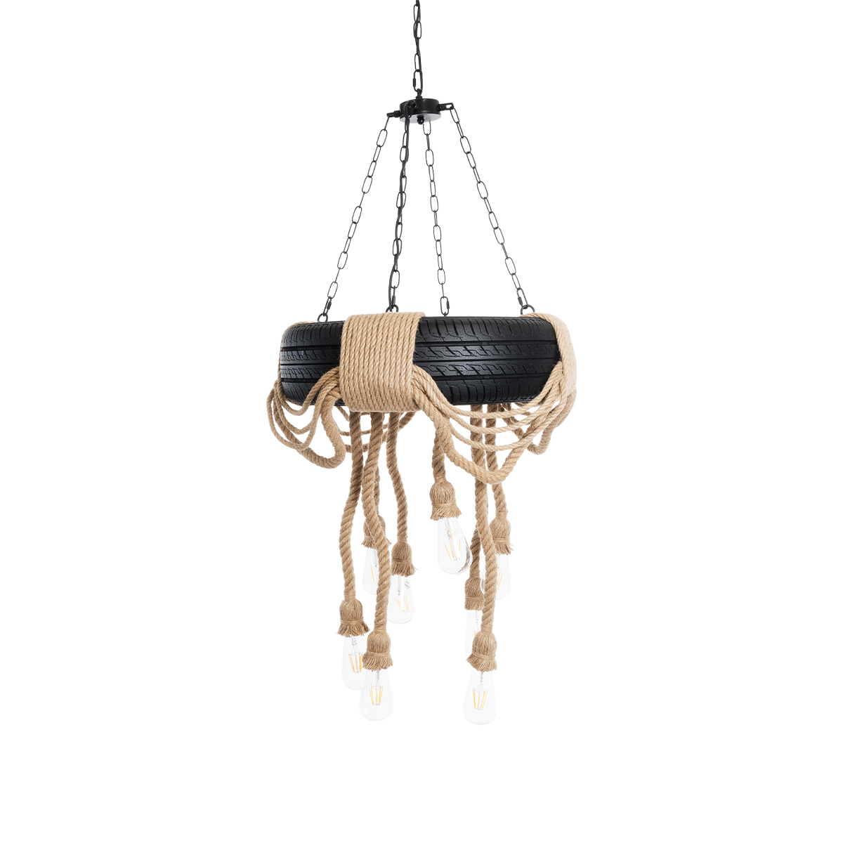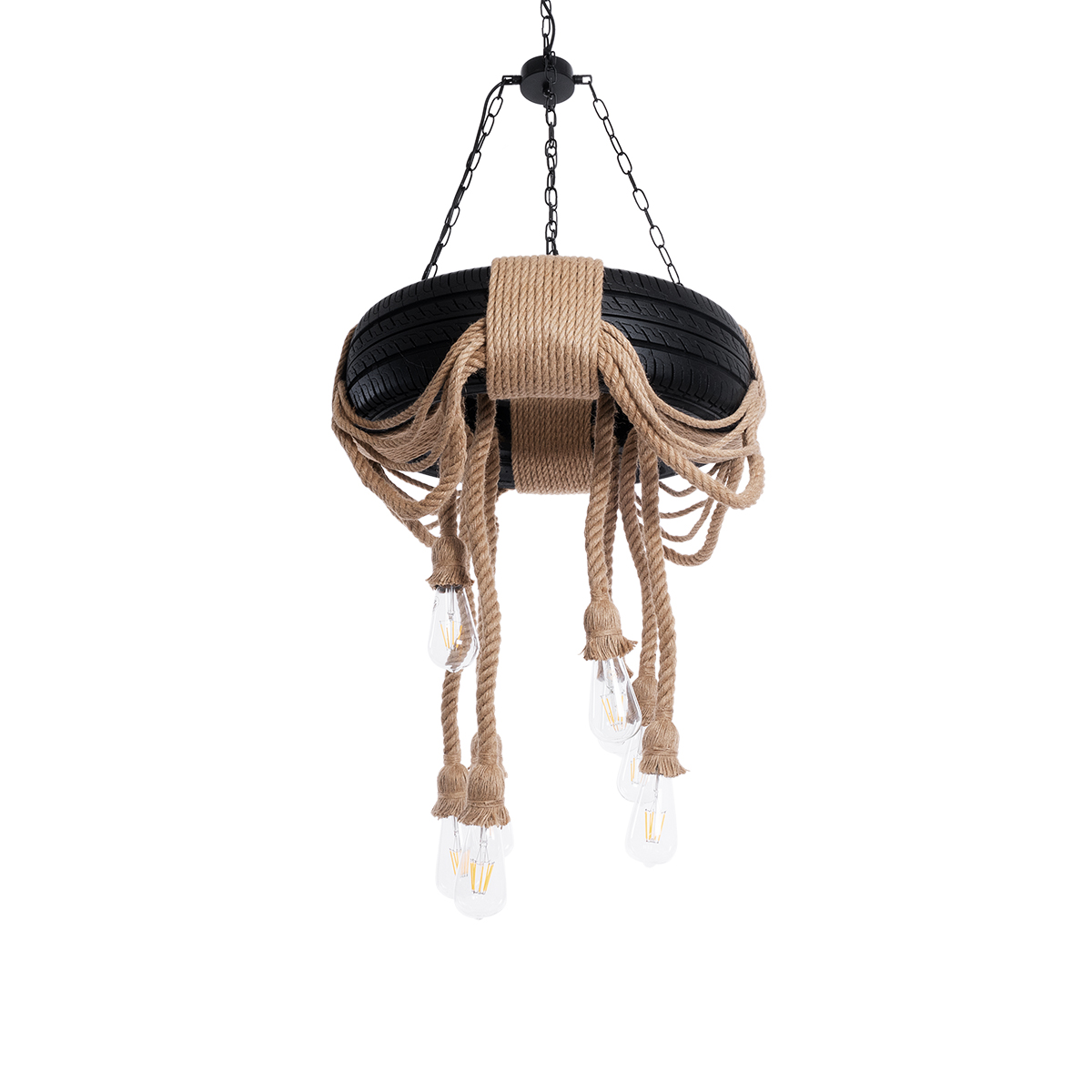 GloboStar® MARBELLA 01116 Vintage Κρεμαστό Φωτιστικό Ανάρτηση Πολύφωτο 8 x E27 IP20 Μαύρο Πλαστικό με Μπεζ Σχοινί – Μ60 x Π60 x Υ60cm