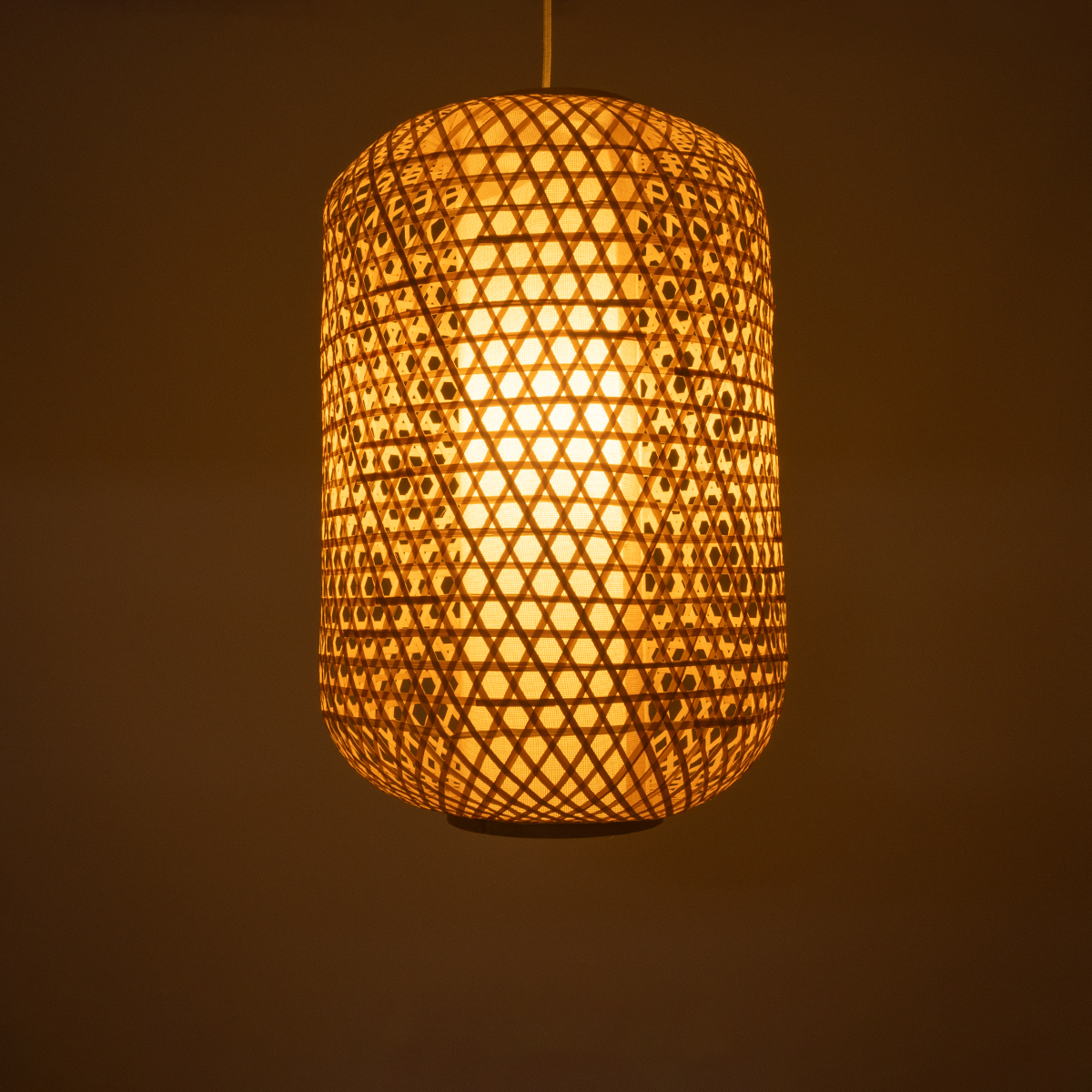 GloboStar® MAURITIUS 00901 Vintage Κρεμαστό Φωτιστικό Οροφής Μονόφωτο Καφέ Ξύλινο Bamboo Φ40 x Y60cm