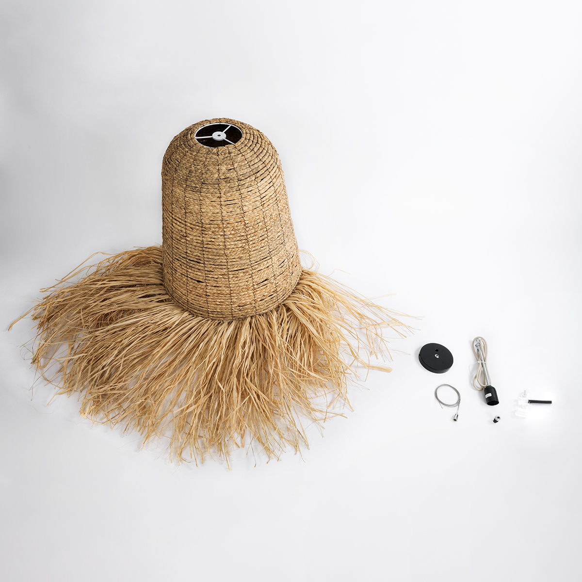 GloboStar® PORTOFERRAIO 02190 Boho Κρεμαστό Φωτιστικό Πλέγμα Μονόφωτο 1 x E27 IP20 Μπεζ Ράφια – Μ60 x Π60 x Υ120cm