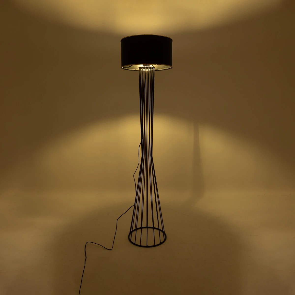 GloboStar® NOVA 201-0037 Μοντέρνο Επιδαπέδιο Φωτιστικό 1 x E27 IP20 Μαύρο Μεταλλό με Μαύρο Ύφασμα – Μ38 x Π38 x Υ155cm
