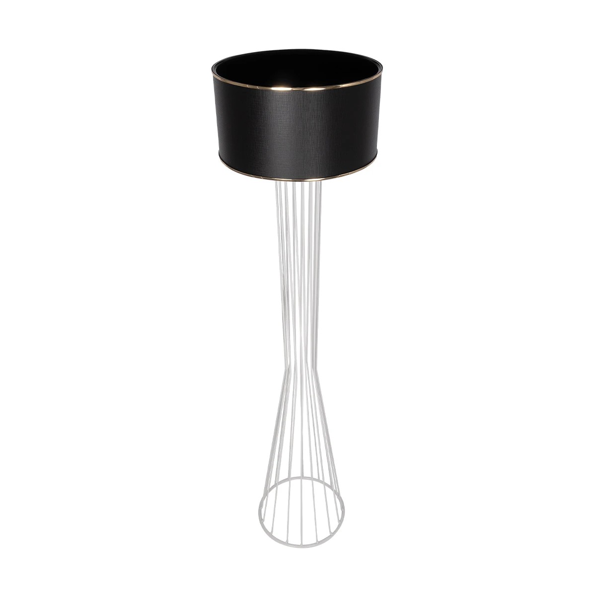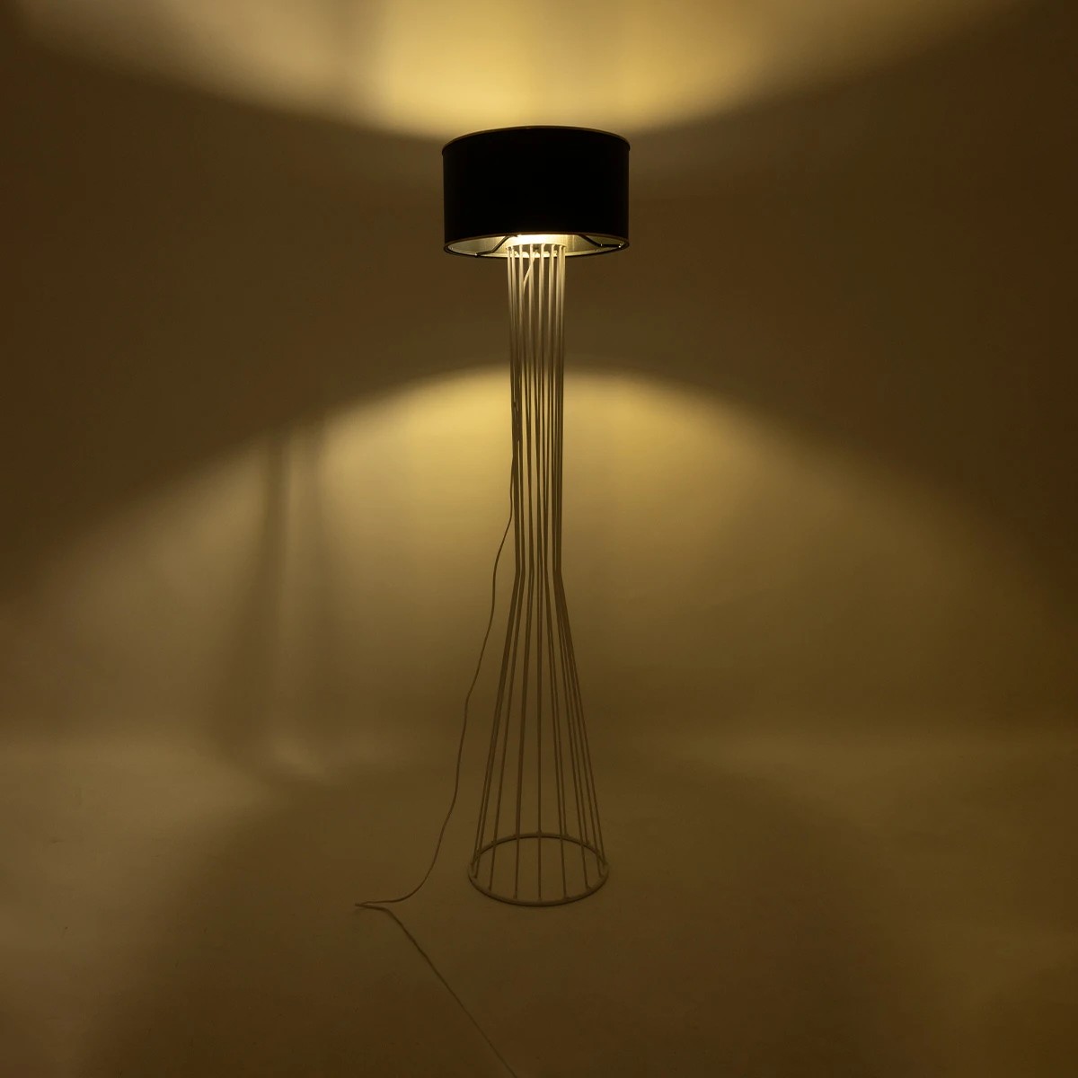 GloboStar® NOVA 201-0038 Μοντέρνο Επιδαπέδιο Φωτιστικό 1 x E27 IP20 Λευκό Μεταλλό με Μαύρο Ύφασμα – Μ38 x Π38 x Υ155cm