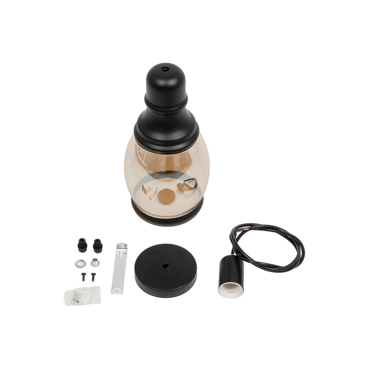 GLOBOSTAR® OLIVER 999-0188 Vintage Κρεμαστό Φωτιστικό Οροφής με Ντουί 1 x E27 AC 220-240V IP20 – Μελί & Μαύρο – Μ14 x Π14 x Υ30cm