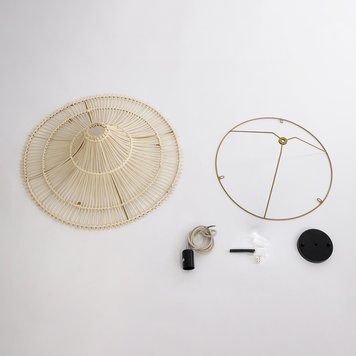 GloboStar® PALERMO 02152 Boho Κρεμαστό Φωτιστικό Πλέγμα Μονόφωτο 1 x E27 IP20 Μπεζ Ξύλο – Μ60 x Π60 x Υ36cm