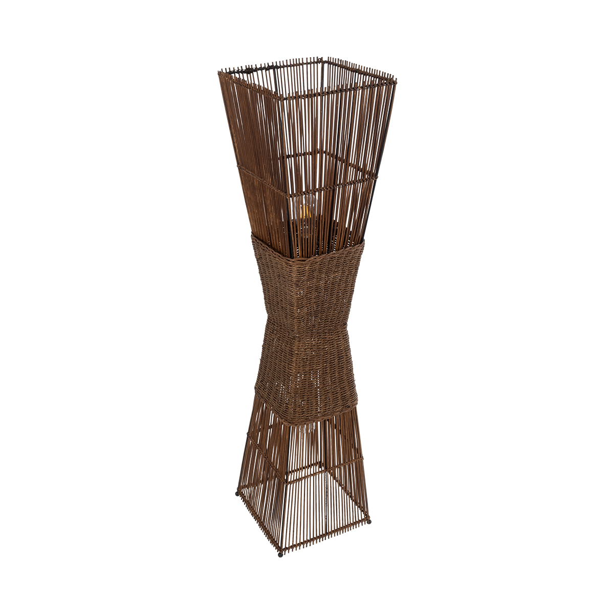 GloboStar® PALMA 02275 Boho Επιδαπέδιο Φωτιστικό Δίφωτο 2 x E27 IP20 Καφέ Ξύλο – Μ30 x Π30 x Υ130cm