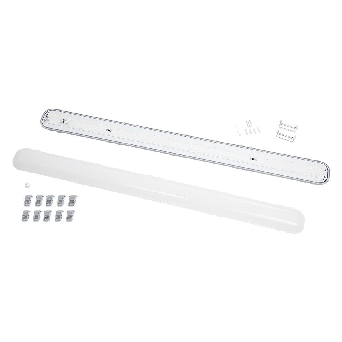 GLOBOSTAR® PARKING 61702 120cm Γραμμικό Βιομηχανικό Φωτιστικό Tri-Proof Τεχνολογίας Smart Group Linkable Control System 2.4Ghz με Αισθητήρα Κίνησης Microwave LED 48W 5760lm 120° AC 220-240V Αδιάβροχο IP65 Γκρι Σώμα με Γαλακτερό Κάλυμα Πλαστικό PC – Φυσικό Λευκό 5000K – LUMILEDs SMD Chip & TÜV SÜD Driver – Μ120 x Π10.5 x Υ8cm – 5 Χρόνια Εγγύηση