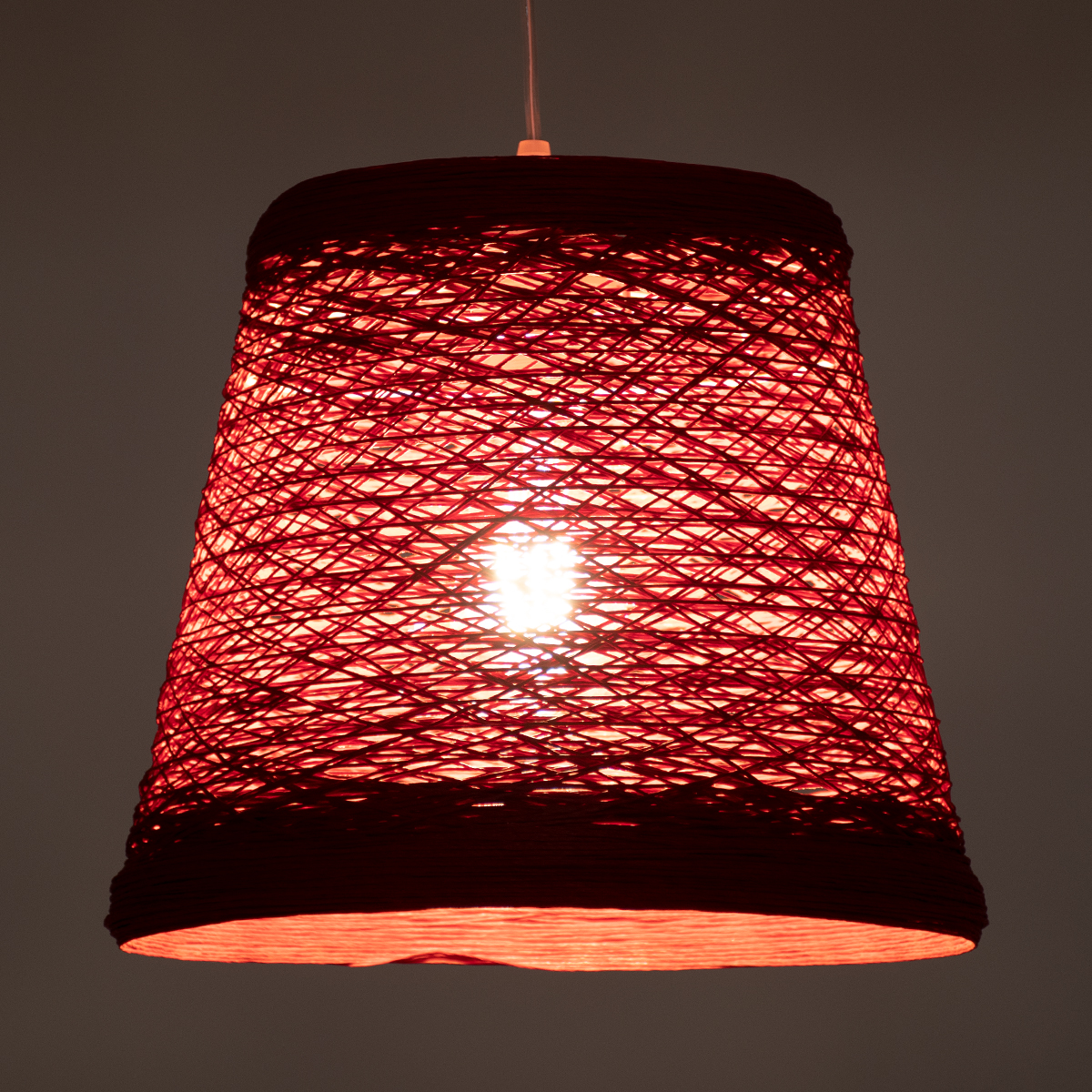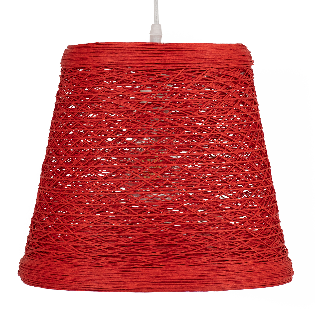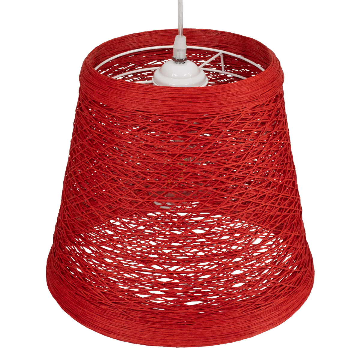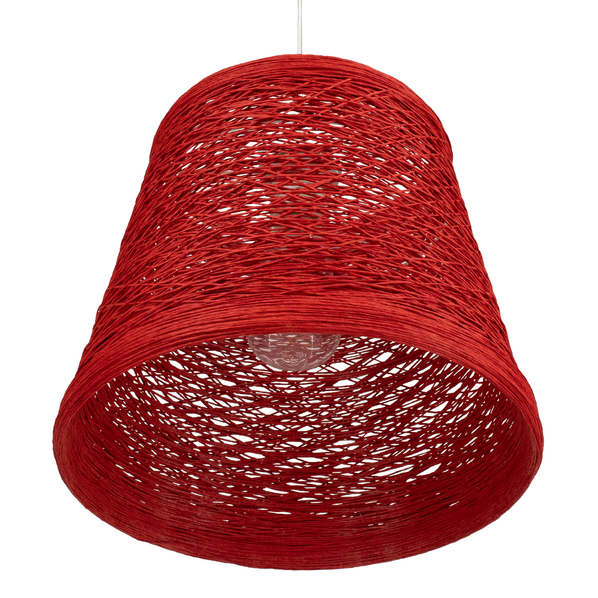 GloboStar® PLAYROOM 00863 Vintage Κρεμαστό Φωτιστικό Καμπάνα Μονόφωτο 1 x E27 IP20 Κόκκινο Rattan – Μ32 x Π32 x Υ27cm