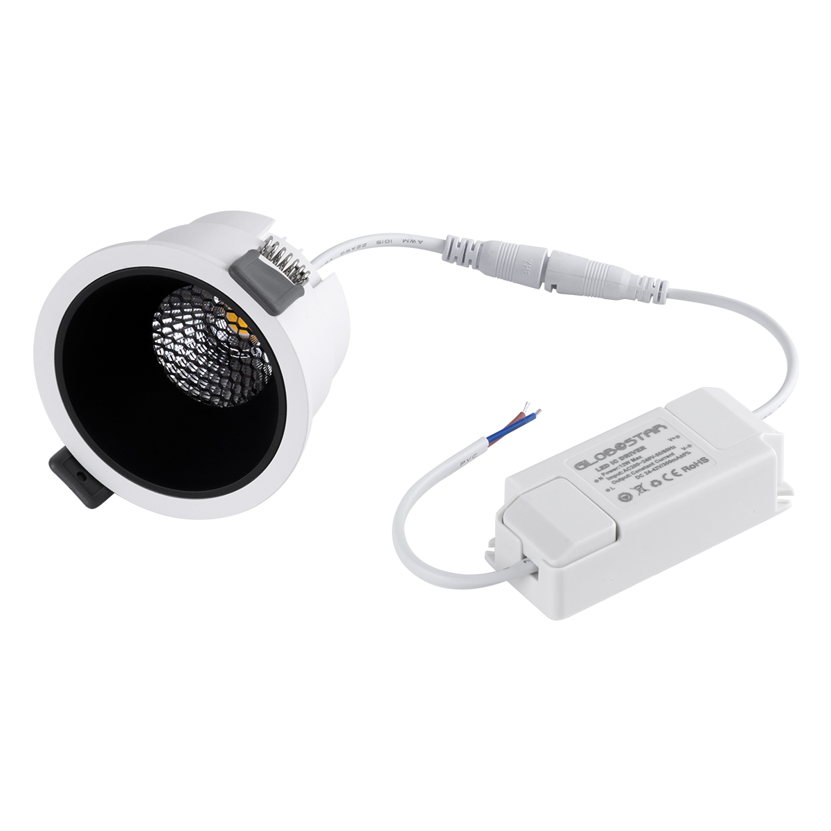 GloboStar® PLUTO-M 60252 Χωνευτό LED Spot Downlight TrimLess Φ8.4cm 10W 1300lm 38° AC 220-240V IP20 Φ8.4 x Υ5.9cm – Στρόγγυλο – Λευκό με Μαύρο Κάτοπτρο & Anti-Glare HoneyComb – Φυσικό Λευκό 4500K – Bridgelux COB – 5 Years Warranty