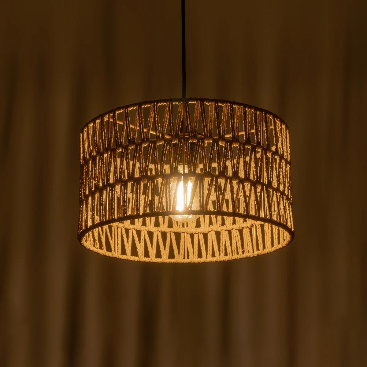 GloboStar® POMEGRANDE 204-0166 Boho Κρεμαστό Φωτιστικό Kαπέλο Μονόφωτο 1 x E27 IP20 Μπεζ Σχοινί – Μ30 x Π30 x Υ16cm