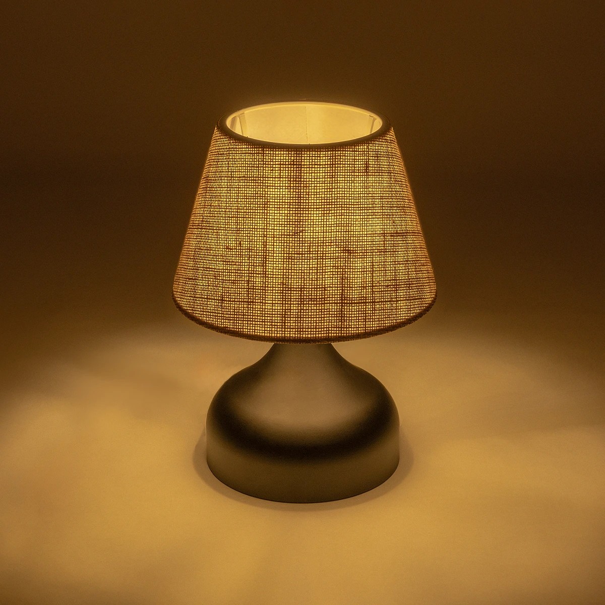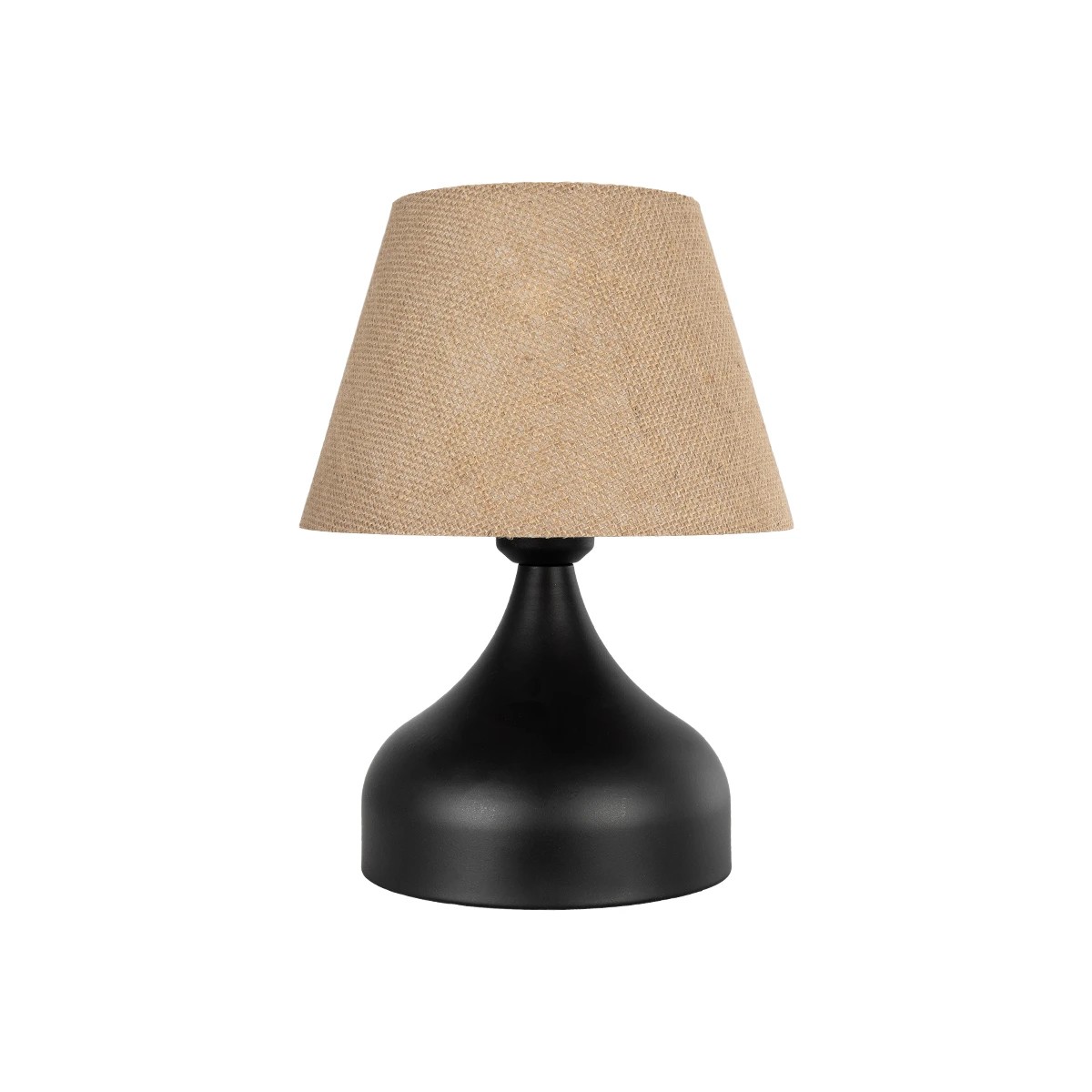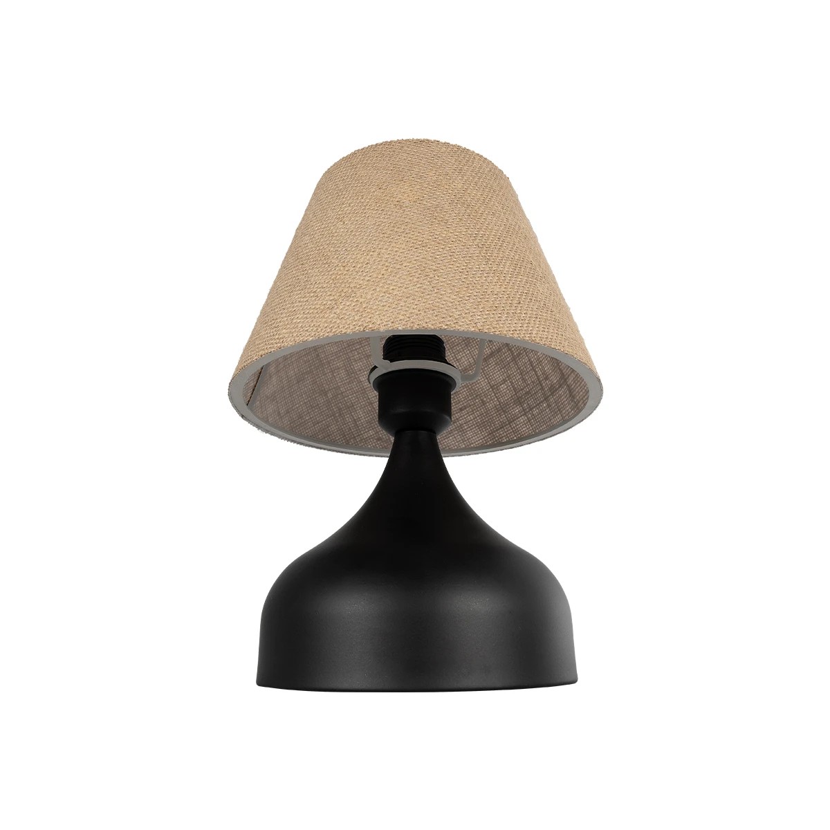 GloboStar® PYRAMID 204-0057 Μοντέρνο Eπιτραπέζιο Φωτιστικό Μονόφωτο 1 x E27 IP20 Μαύρο Μέταλλο με Μπεζ Ύφασμα – Μ22 x Π22 x Υ30cm