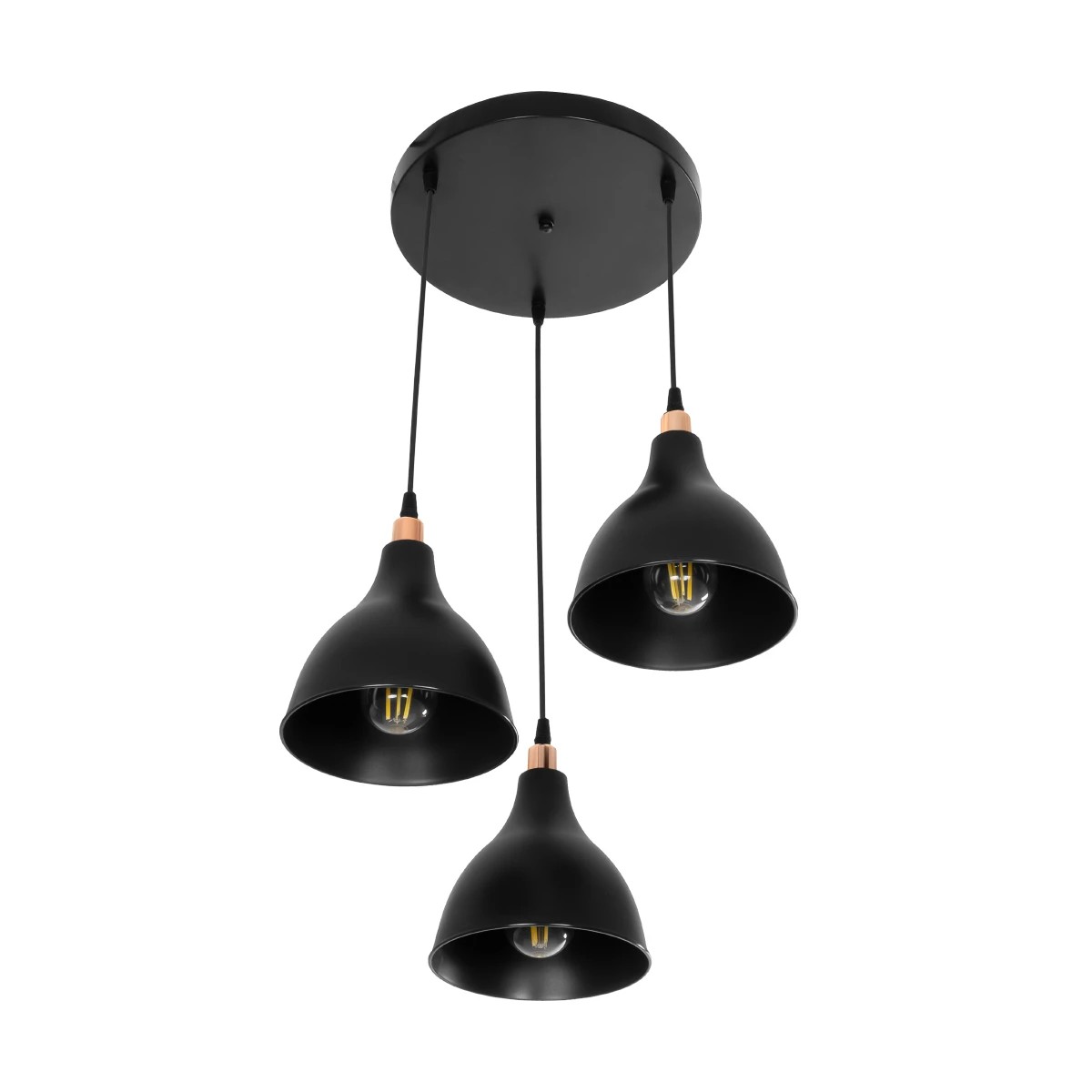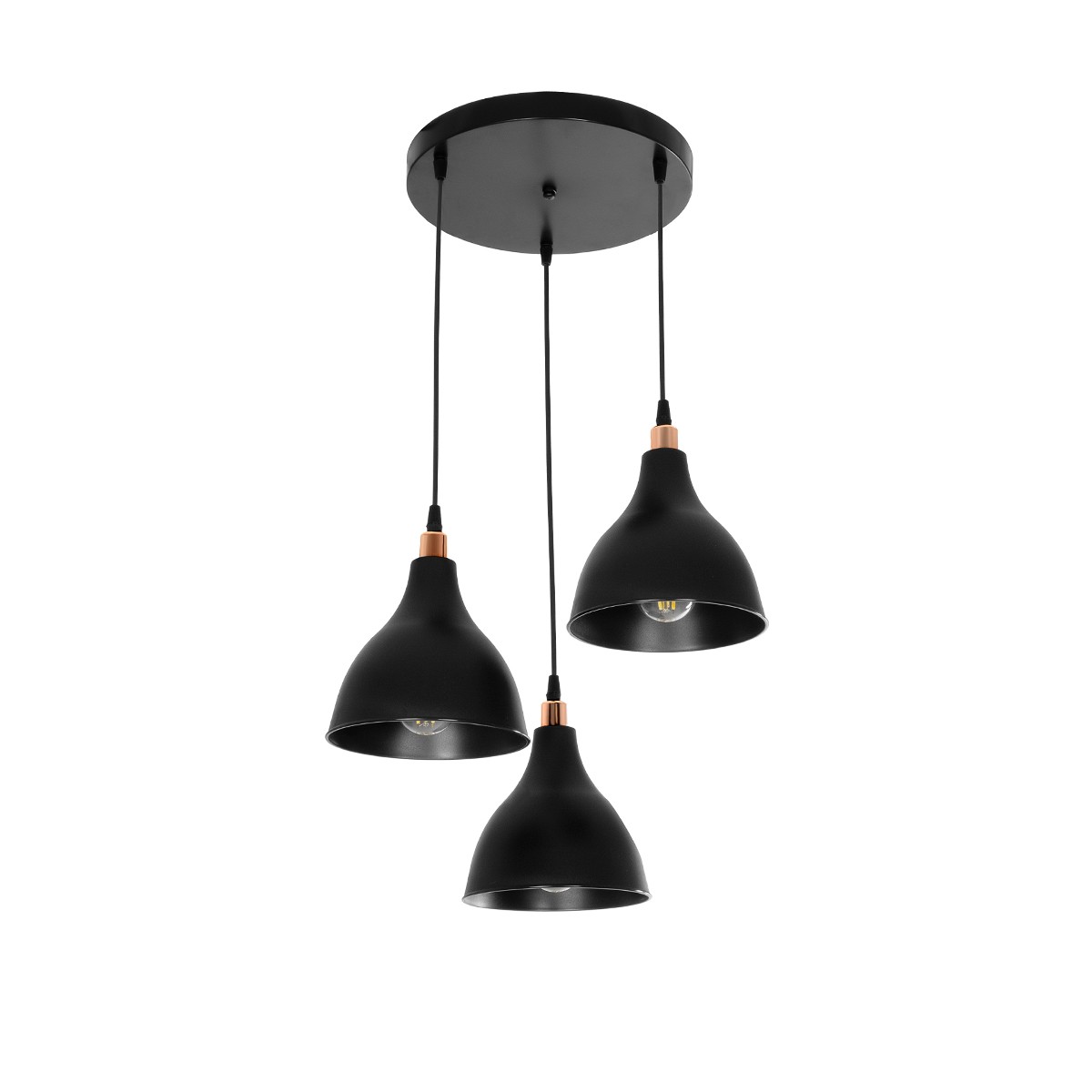 GloboStar® RADE 203-0127 Vintage Κρεμαστό Φωτιστικό Καμπάνα Τρίφωτο 3 x E27 IP20 Μαύρο Πλαστικό – Μ40 x Π40 x Υ80cm