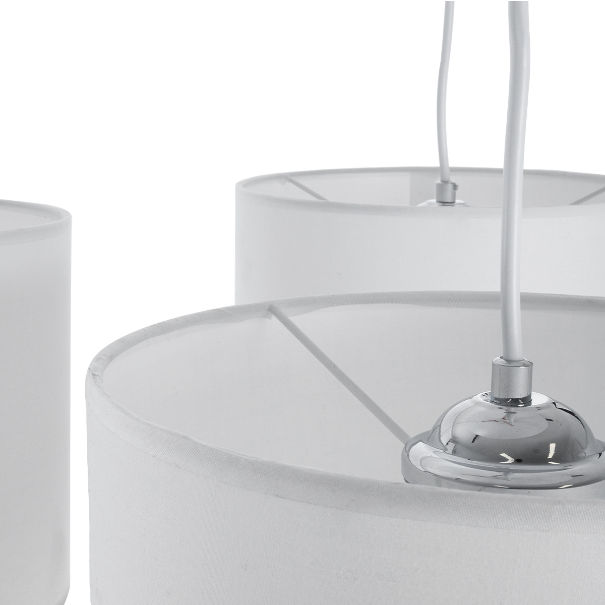 GloboStar® RAMSON 01526 Μοντέρνο Κρεμαστό Φωτιστικό Οροφής Τρίφωτο Λευκό με Ξύλο και Υφασμάτινα Καπελα Φ67 x Υ65cm