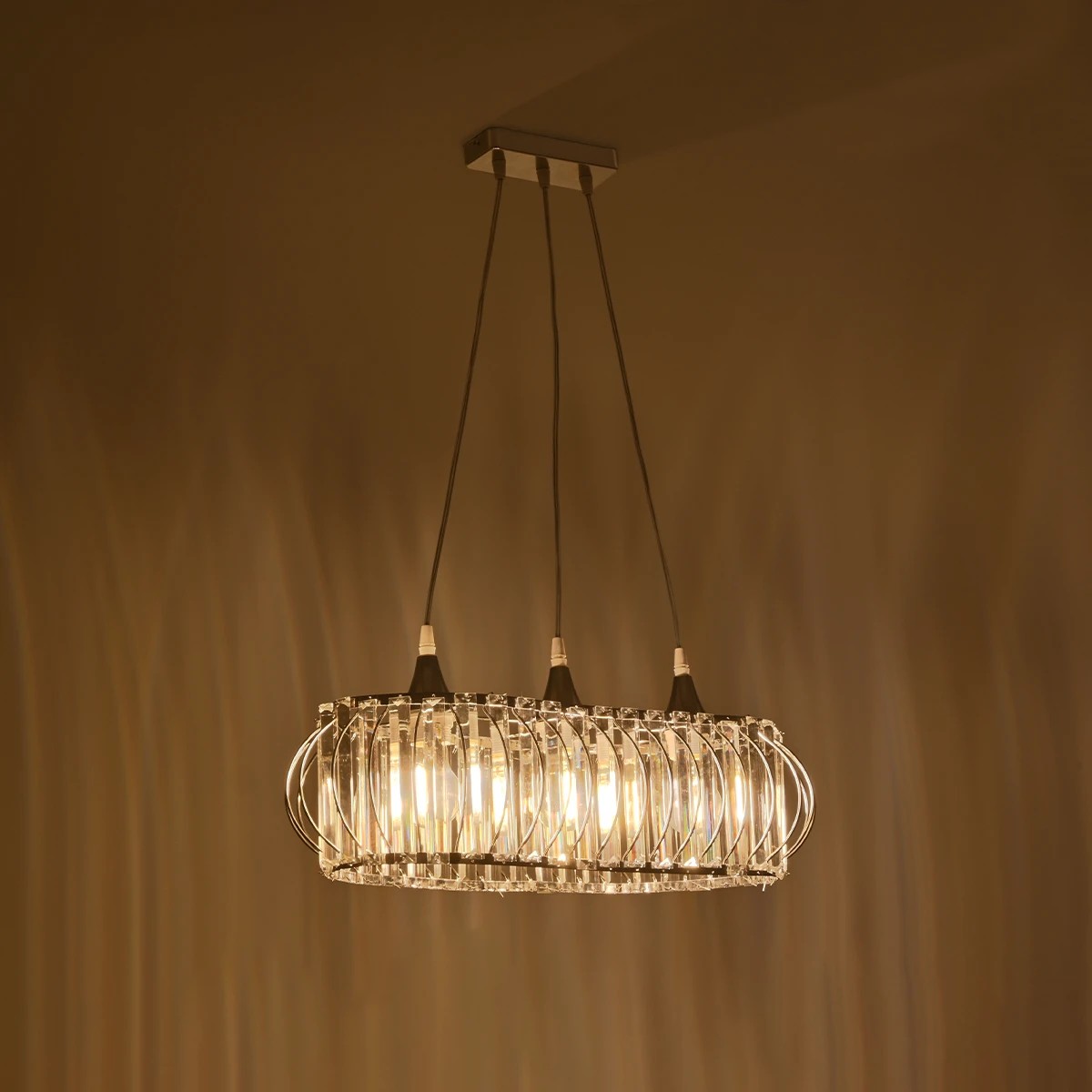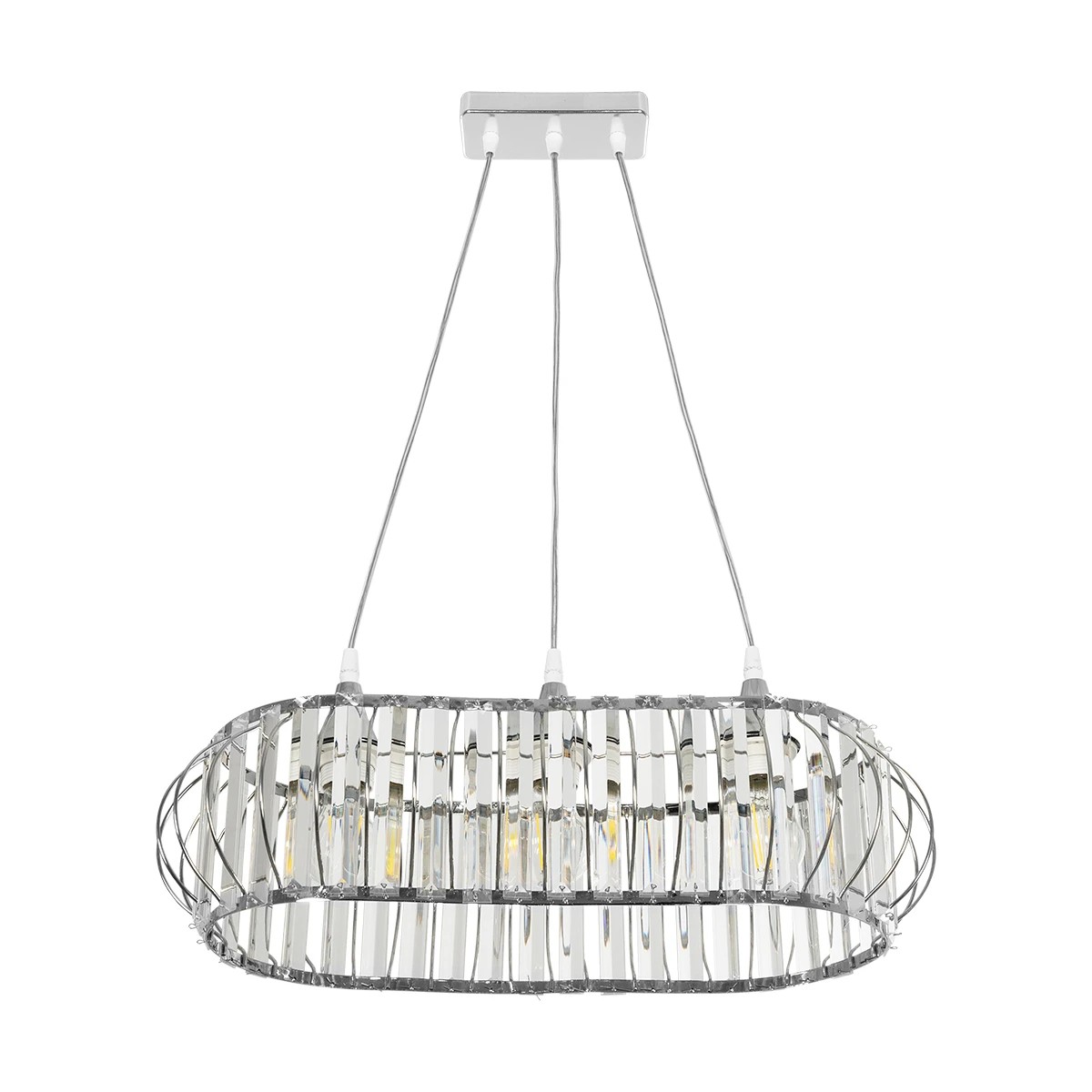 GloboStar® RAZIA 201-0101 Vintage Κρεμαστό Φωτιστικό Κρύσταλλα Τρίφωτο 3 x E27 IP20 Ασημί Μέταλλο με Διάφανο Γυαλί – Μ60 x Π40 x Υ70cm