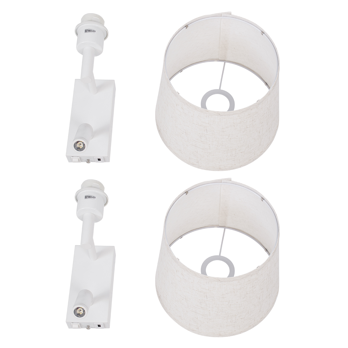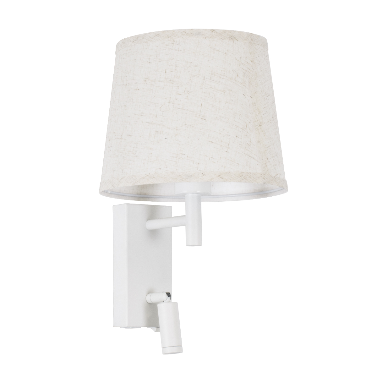 GloboStar® ROULETTE-R 61380 Μοντέρνο Φωτιστικό Τοίχου – Απλίκα Ξενοδοχείου Bed Side LED 3W 360lm & 1 x E27 36° & 360° AC 220-240V – Reading Up/Down Light – Φορτιστής USB 3A – Μ22 x Π23.5 x Υ37cm – Φυσικό Λευκό 4500K – Λευκό με Μπεζ Καπέλο – Σετ 2 Τεμαχίων