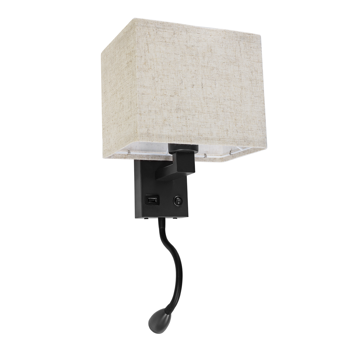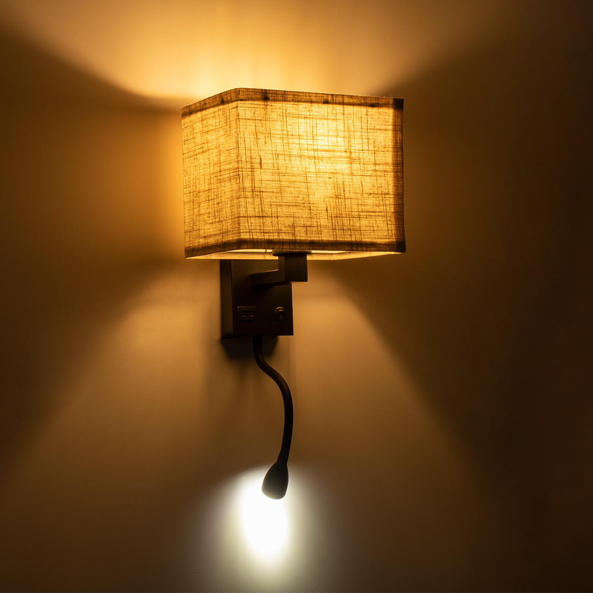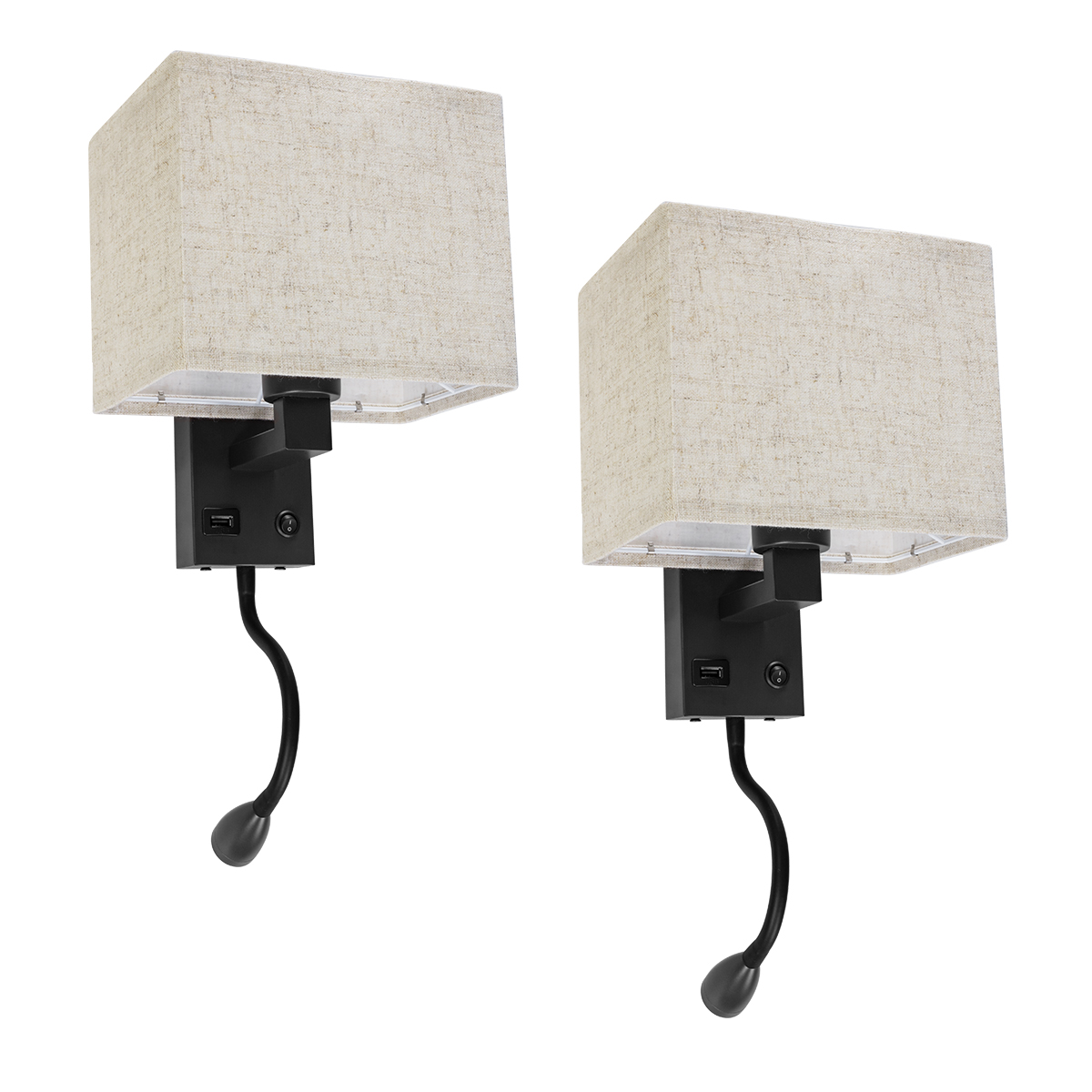 GloboStar® ROULETTE-S 61382 Μοντέρνο Φωτιστικό Τοίχου – Απλίκα Ξενοδοχείου Bed Side LED 3W 360lm & 1 x E27 36° & 360° AC 220-240V – Reading Up/Down Light – Φορτιστής USB 3A – Μ17 x Π20 x Υ37cm – Φυσικό Λευκό 4500K – Μαύρο με Μπεζ Καπέλο – Σετ 2 Τεμαχίων