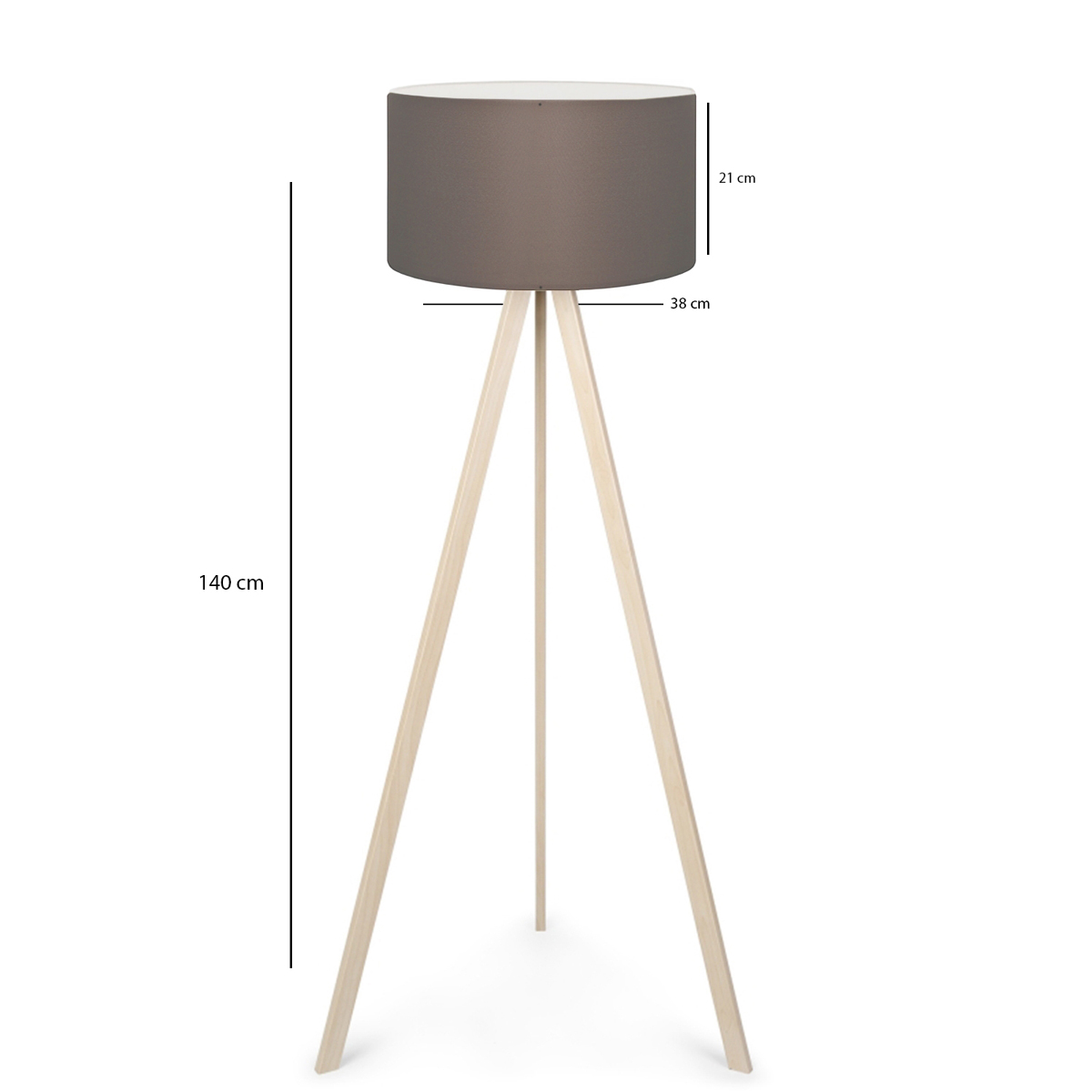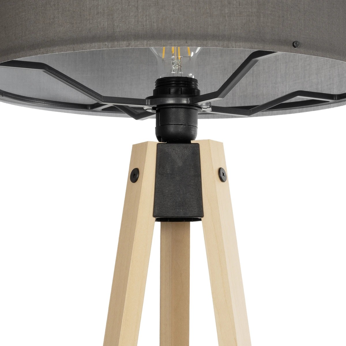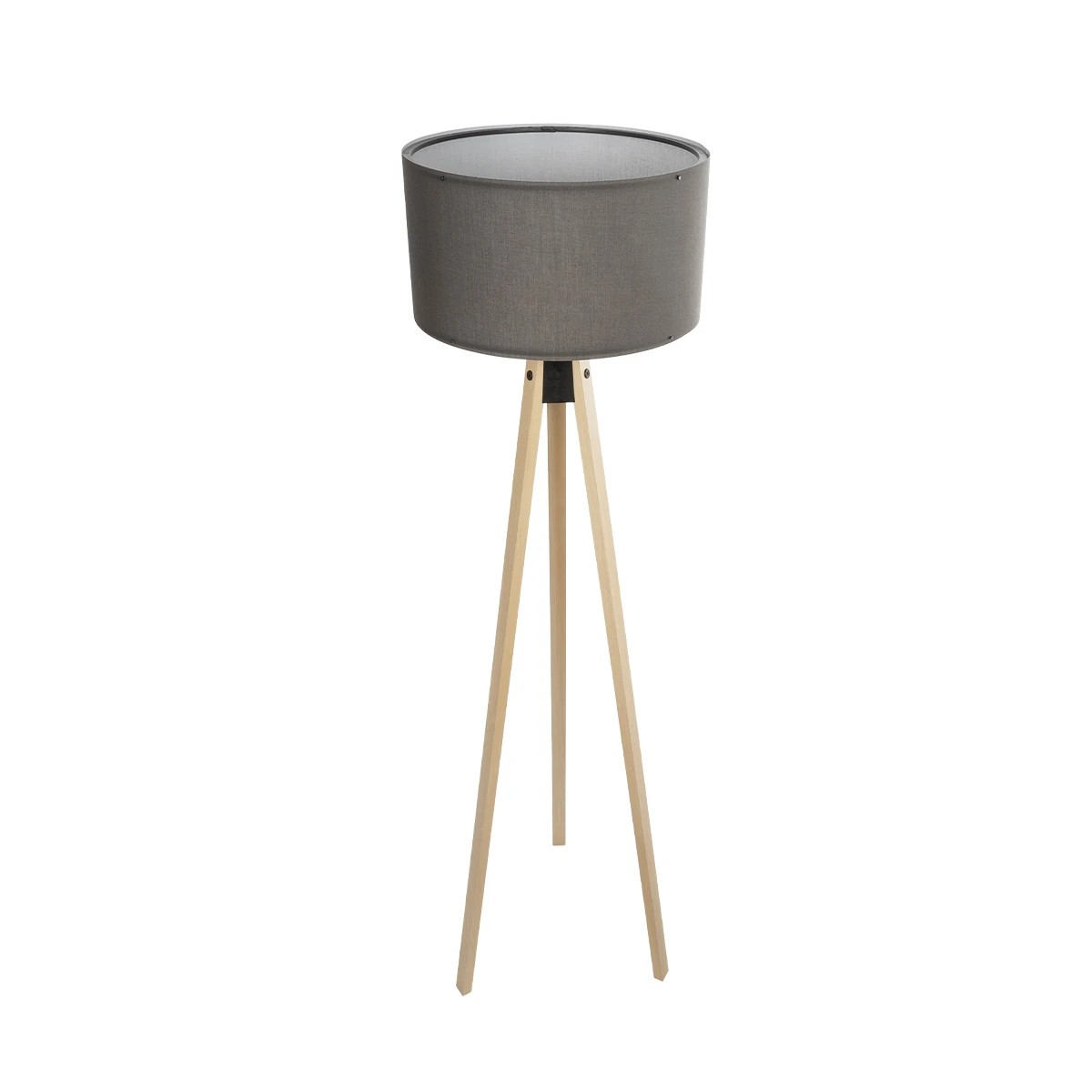 GloboStar® SAGA 204-0044 Μοντέρνο Eπιδαπέδιο Φωτιστικό Μονόφωτο 1 x E27 IP20 Μπεζ Ξύλο με Γκρι Ύφασμα – Μ38 x Π38 x Υ140cm