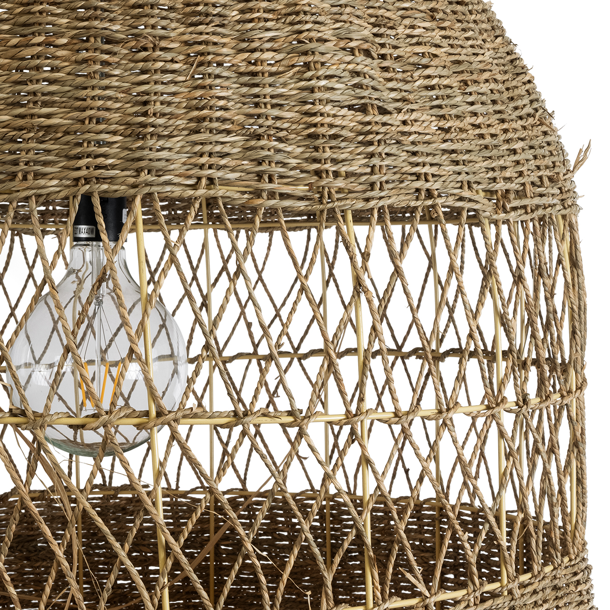 GloboStar® SAINTLUCIA 02161 Boho Κρεμαστό Φωτιστικό Πλεγμα Μονόφωτο 1 x E27 IP20 Μπεζ Ράφια – Μ66 x Π66 x Υ120cm