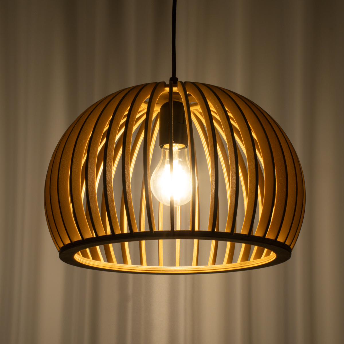 GloboStar® SCANDINAVIA 01698 Μοντέρνο Κρεμαστό Φωτιστικό Πλέγμα Μονόφωτο 1 x E27 IP20 Μπεζ Ξύλο – Μ33 x Π33 x Υ20cm