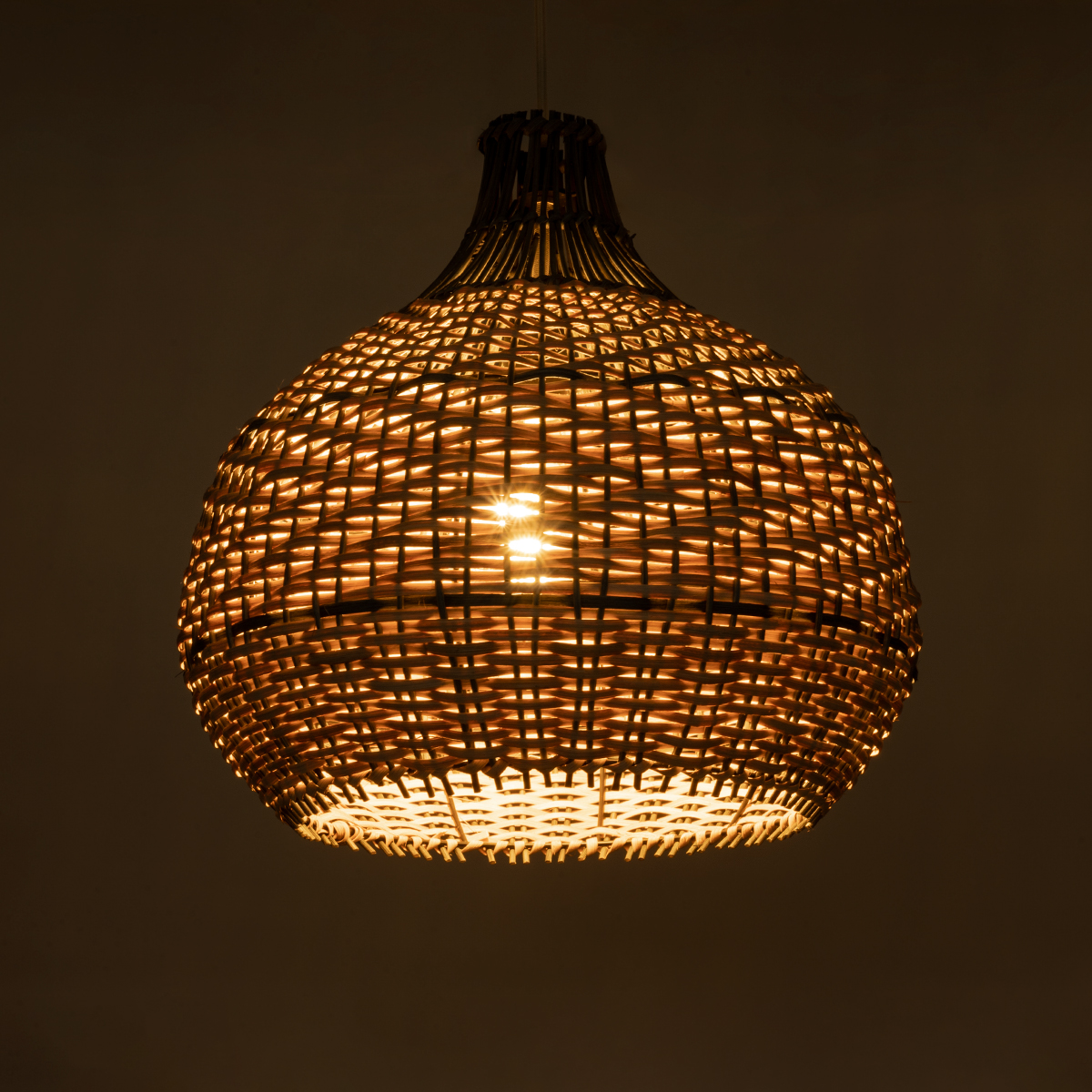 GloboStar® SEYCHELLES 01948 Boho Κρεμαστό Φωτιστικό Καμπάνα Μονόφωτο 1 x E27 IP20 Μπεζ, Χακί & Καφέ Ξύλο – Μ40 x Π40 x Υ40cm