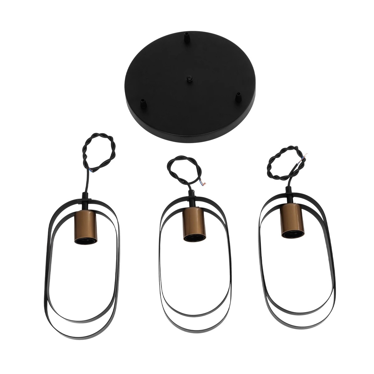 GloboStar® SPARKIO 201-0025 Vintage Κρεμαστό Φωτιστικό Πλέγμα Τρίφωτο 3 x E27 IP20 Μαύρο με Χρυσό Μέταλλο – Μ30 x Π30 x Υ80cm