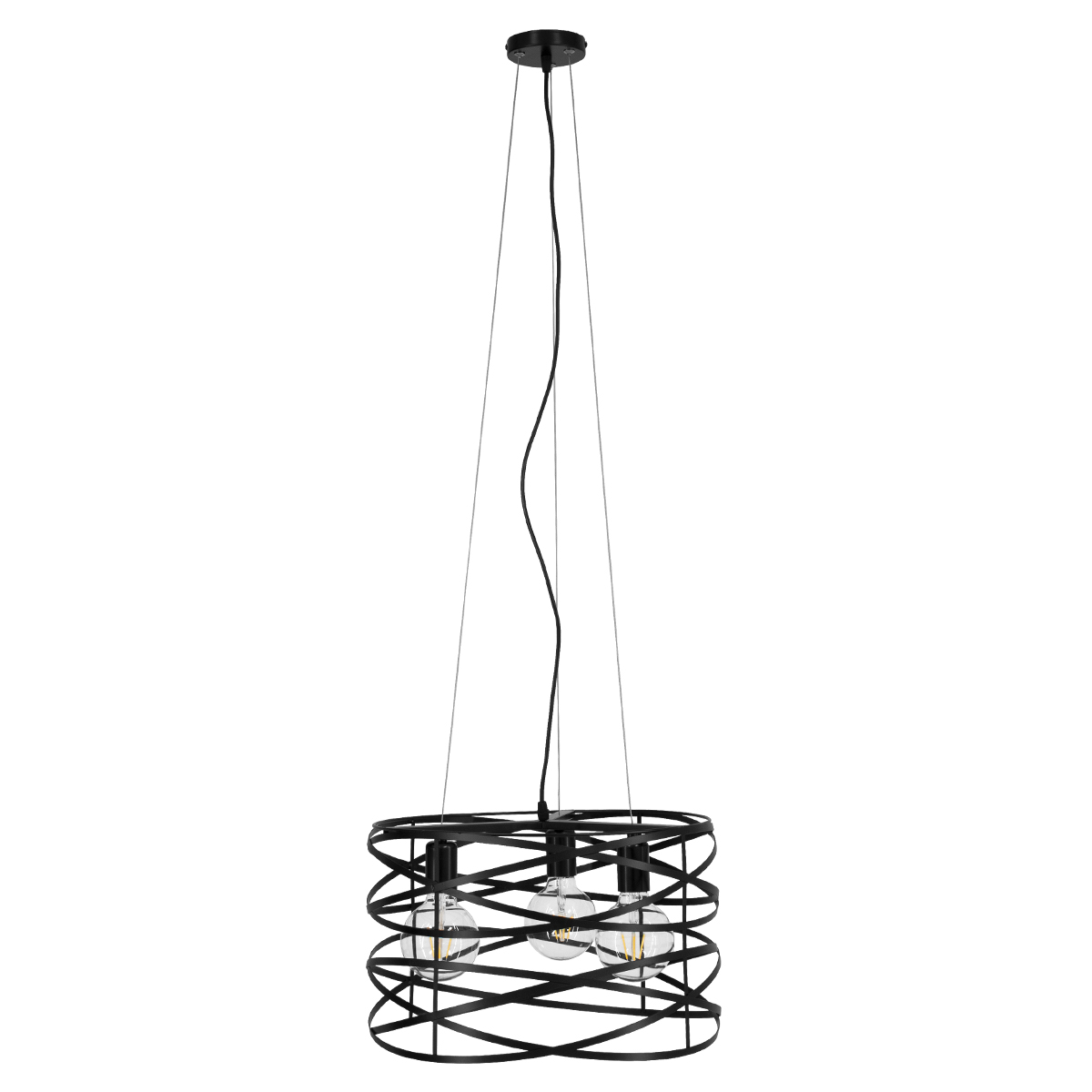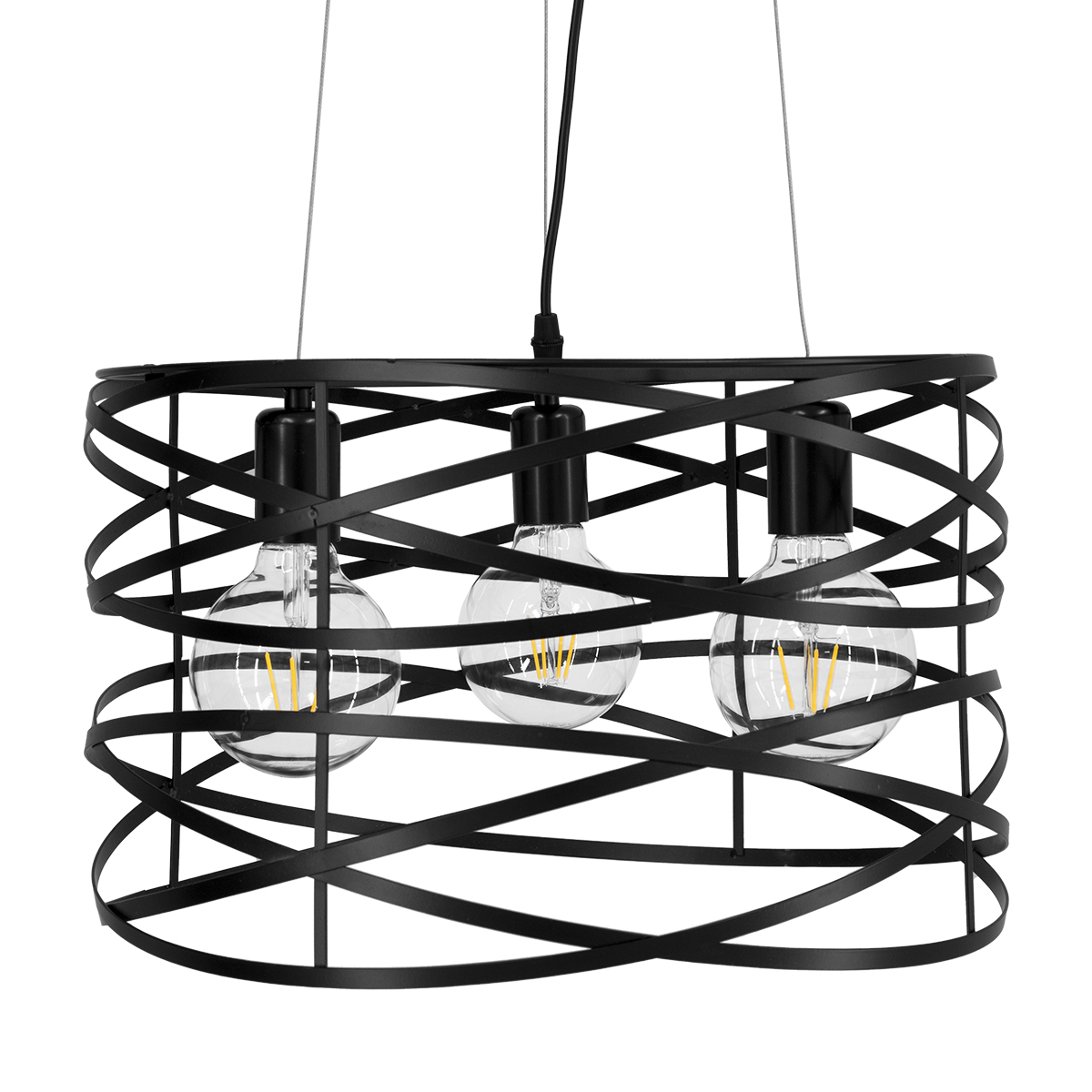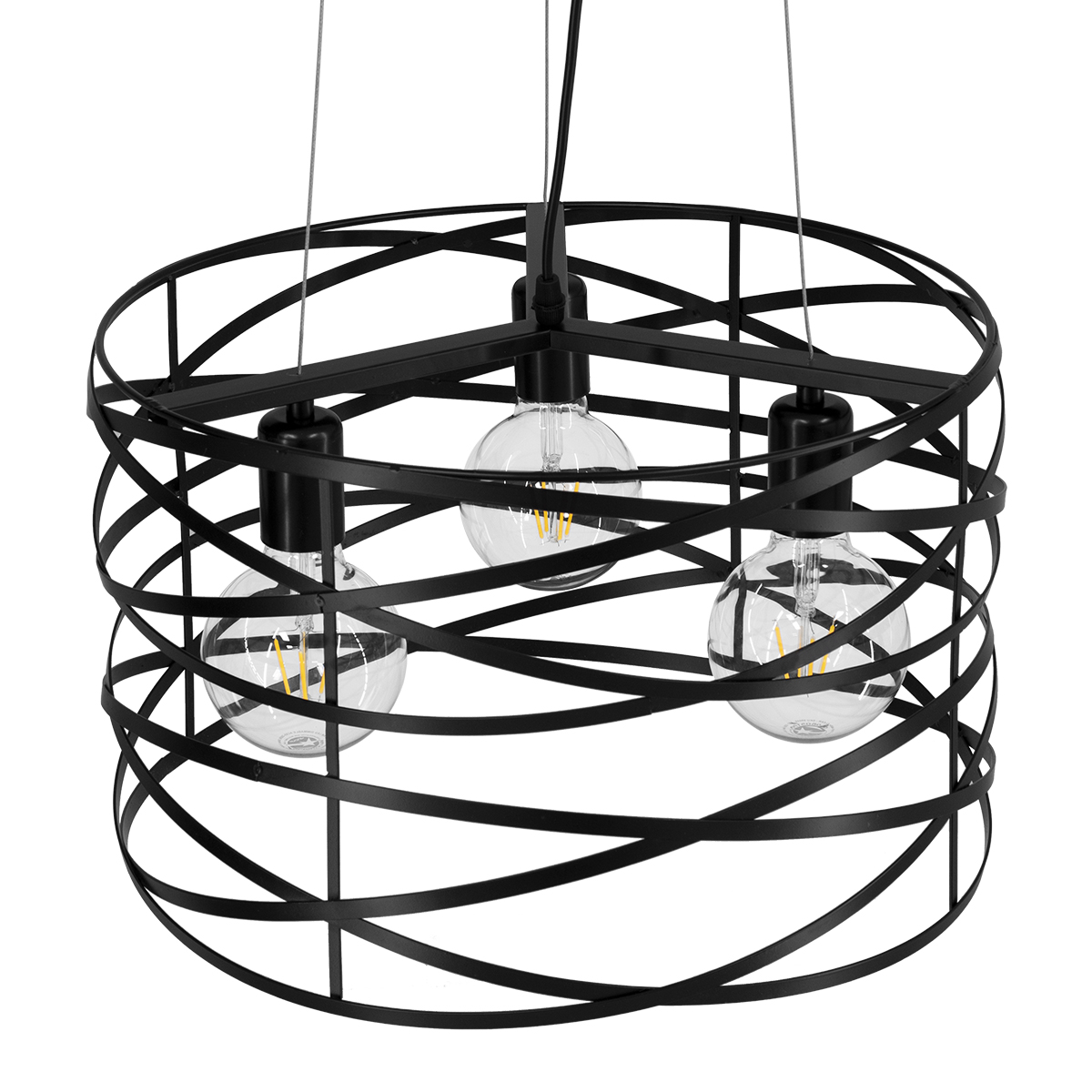 GloboStar® TOKEN 00855 Μοντέρνο Κρεμαστό Φωτιστικό Πλέγμα Τρίφωτο 3 x E27 IP20 Μαύρο Μέταλλο – Μ43 x Π43 x Υ29cm
