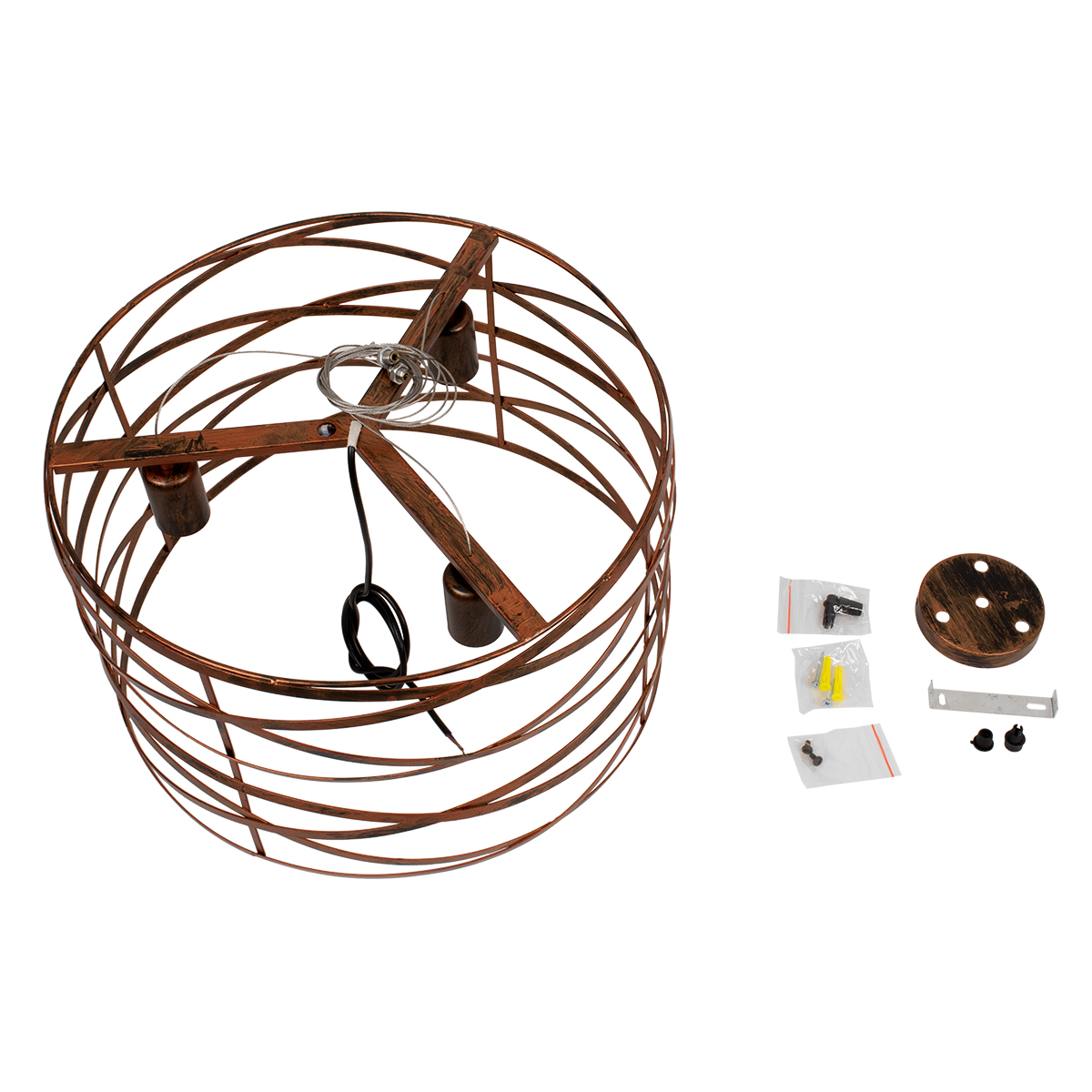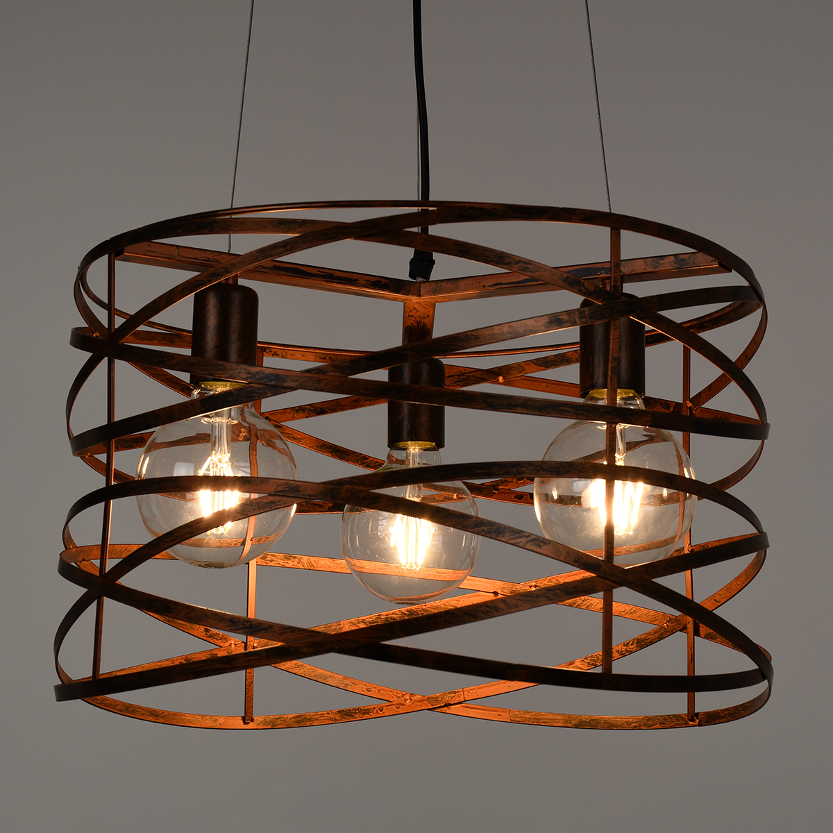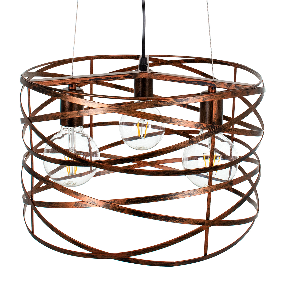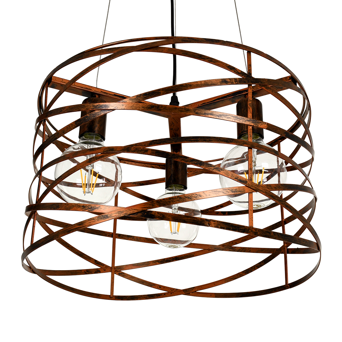 GloboStar® TOKEN 00856 Μοντέρνο Κρεμαστό Φωτιστικό Πλέγμα Τρίφωτο 3 x E27 IP20 Χάλκινο Μέταλλο Μ43 x Π43 x Υ29cm