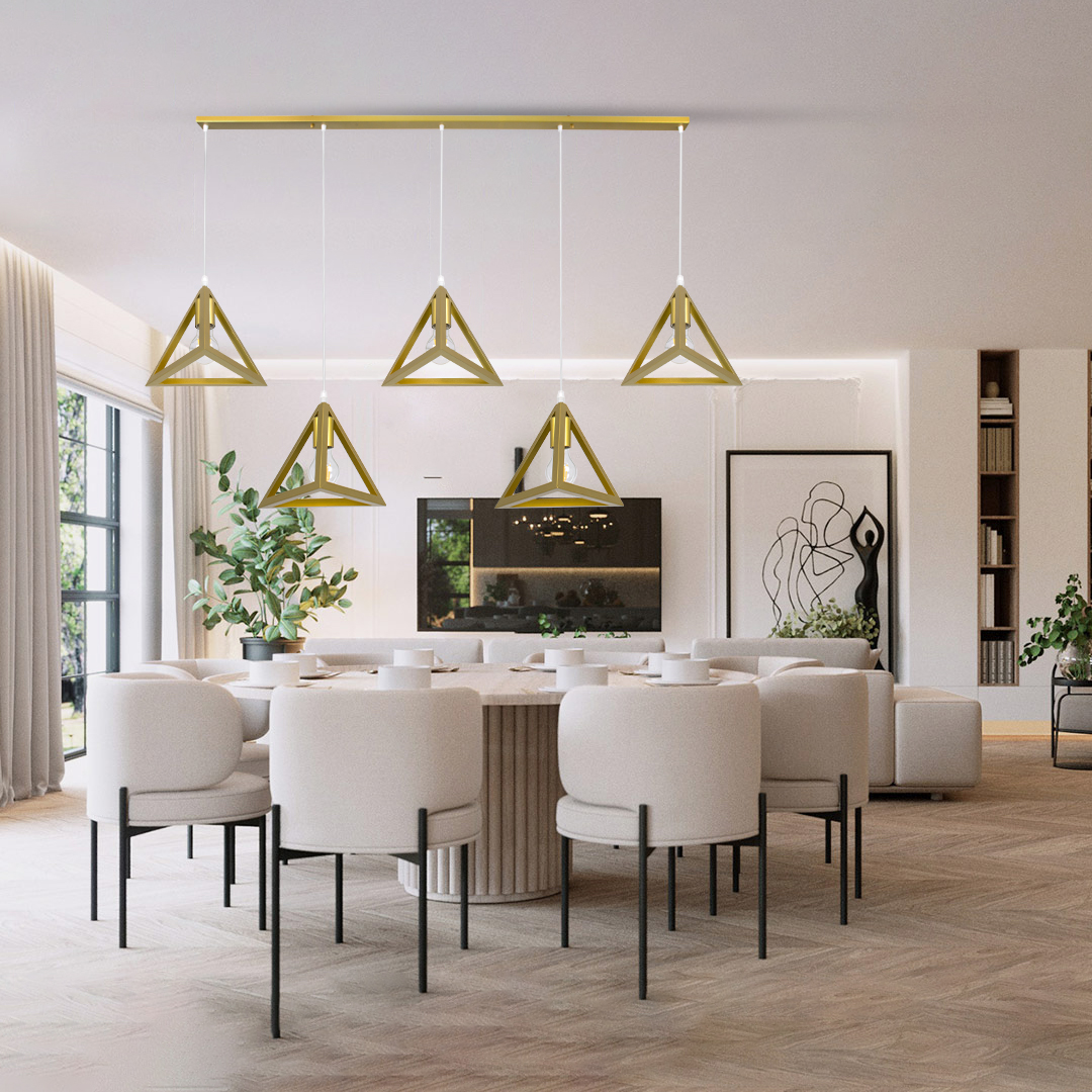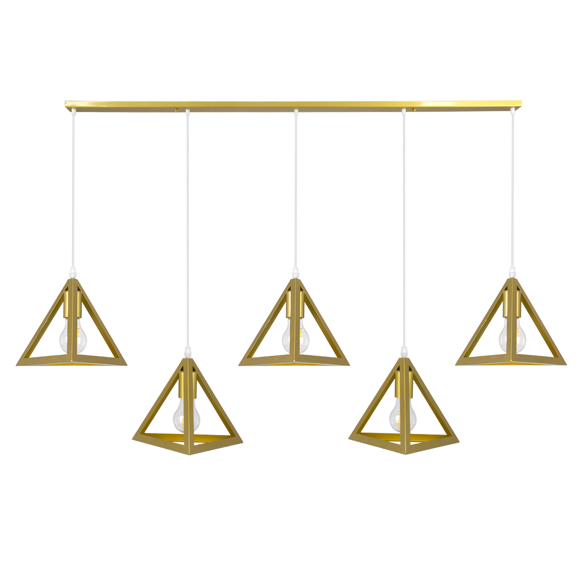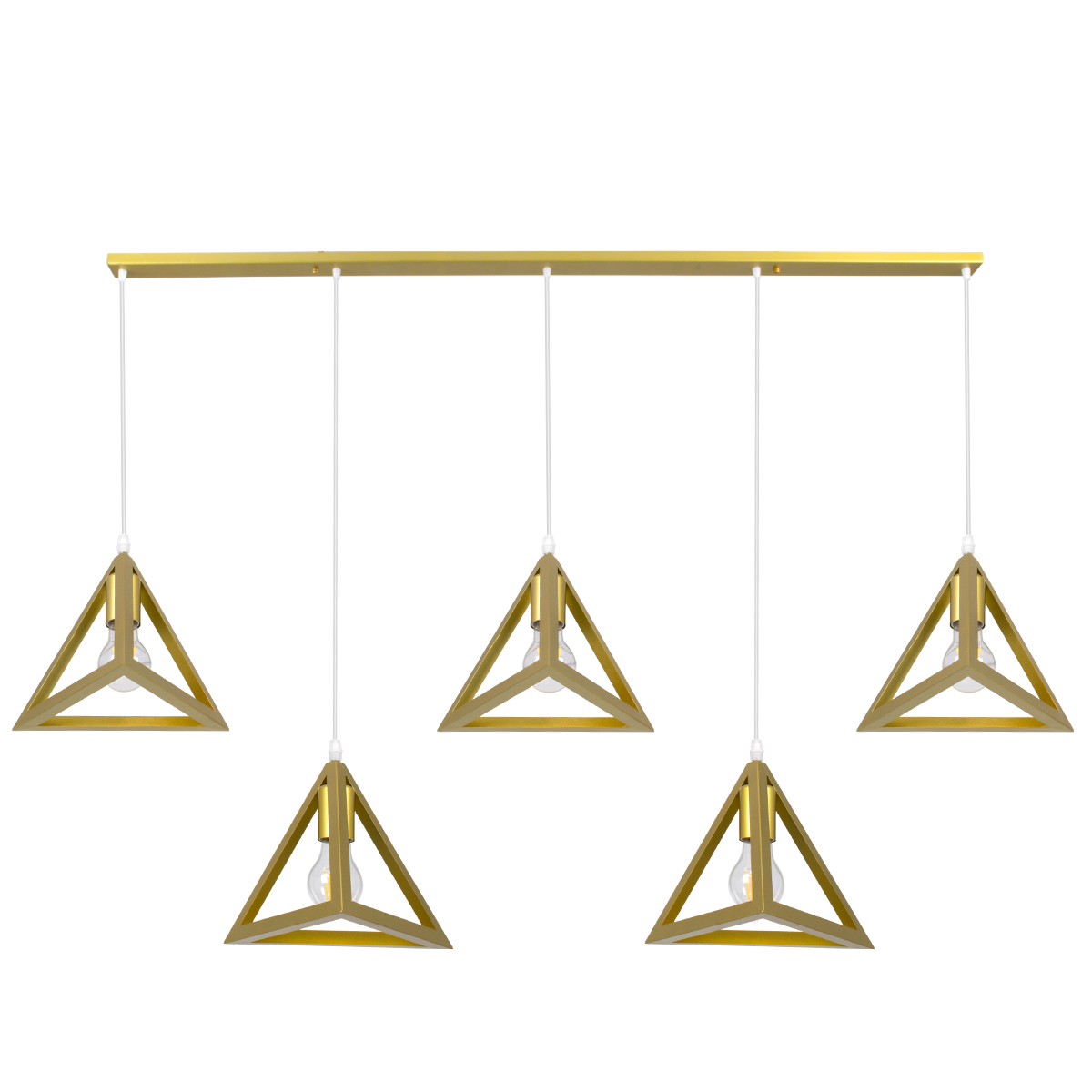GloboStar® TRIANGLE 00610 Μοντέρνο Κρεμαστό Φωτιστικό Ράγα Πολύφωτο 5 x E27 IP20 Χρυσό Μέταλλο – Μ170 x Π22 x Y130cm