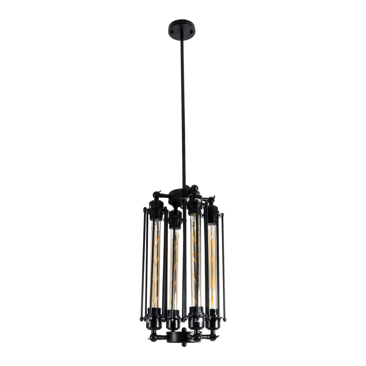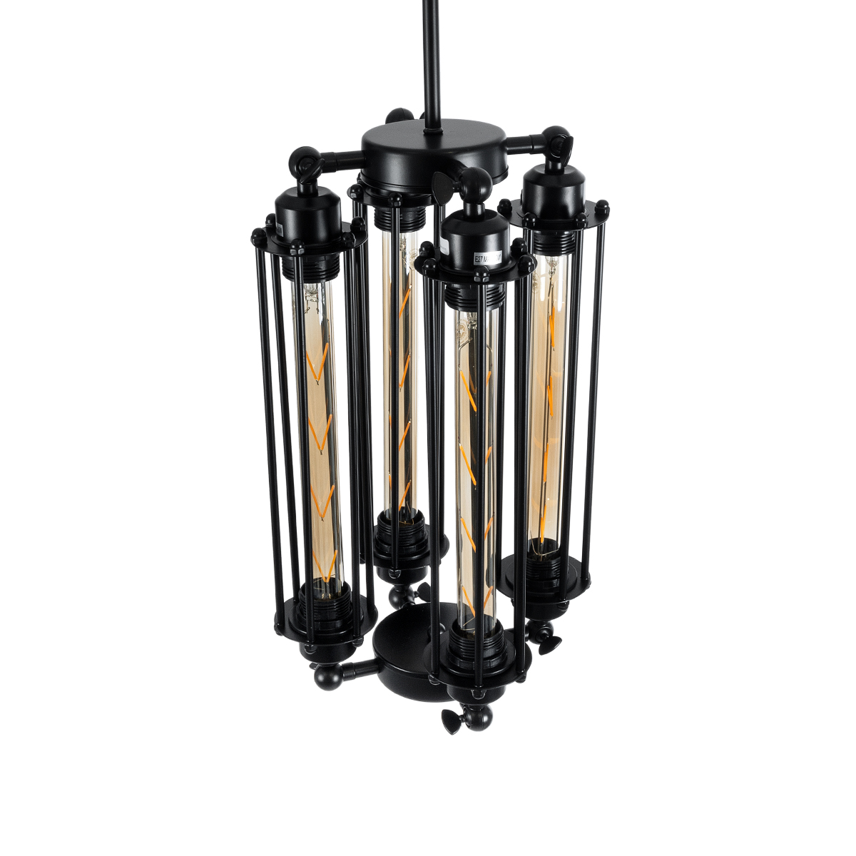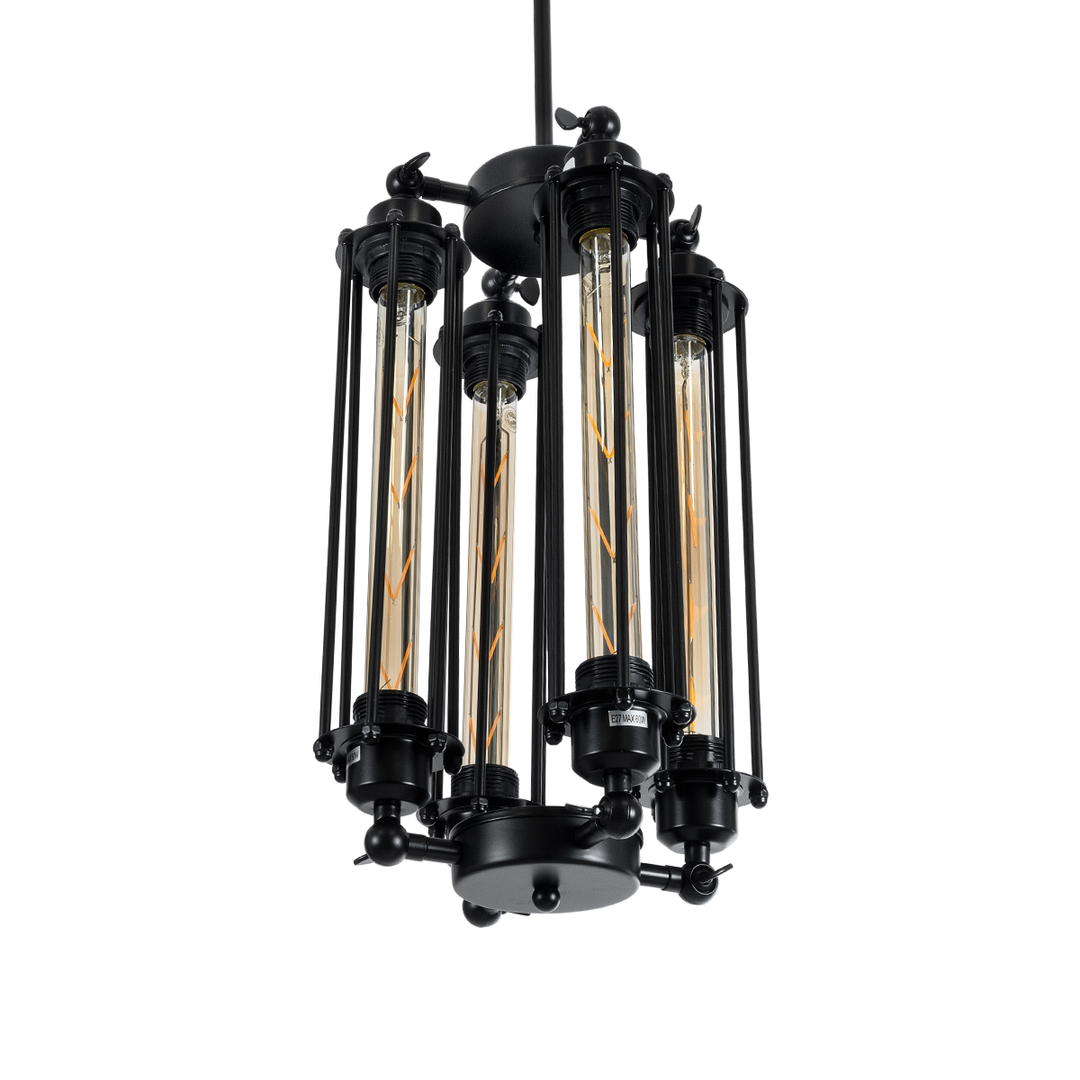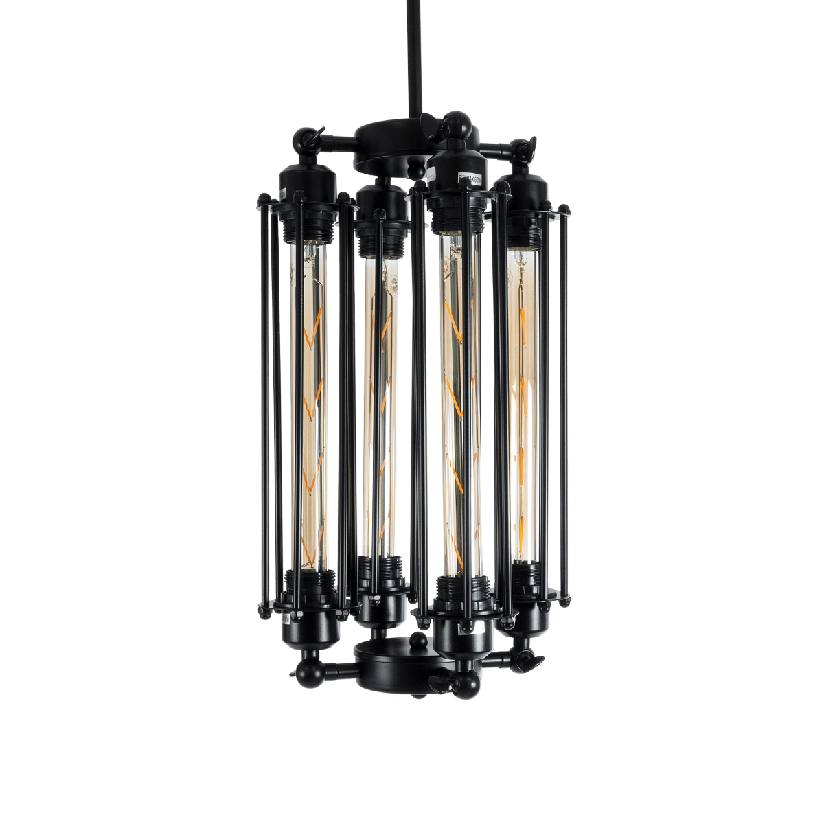 GloboStar® TUBING 01013 Vintage Κρεμαστό Φωτιστικό Πλέγμα Πολύφωτο 4 x E27 IP20 Μαύρο Μέταλλο – Μ27 x Π27 x Y47cm
