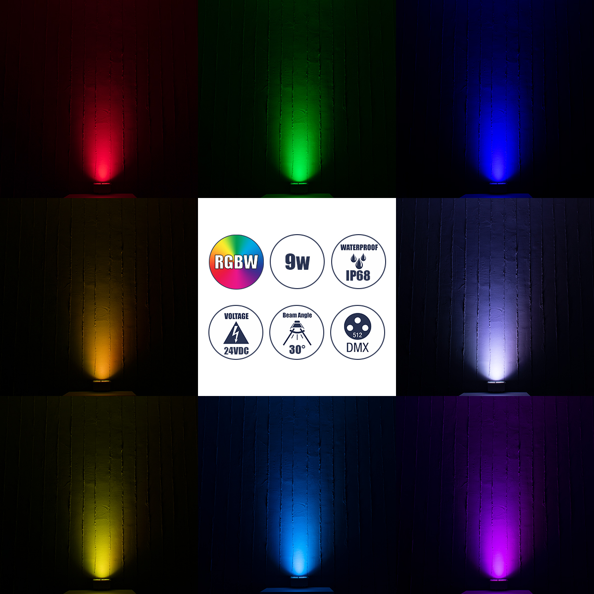 GloboStar® UNDERWATER-FINA 90675 Υποβρύχιο Φωτιστικό Σποτ Ειδικό για Σιντριβάνια LED 9W 945lm 30° DC 24V Αδιάβροχο IP68 Φ16 x Υ8cm Πολύχρωμο RGBW DMX512 – Ανοξείδωτο Ατσάλι – 3 Χρόνια Εγγύηση