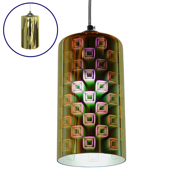 GloboStar® URANUS 01352 Μοντέρνο Κρεμαστό Φωτιστικό Οροφής Μονόφωτο Γυάλινο Νίκελ Χρυσό 3D Φ12 x Υ22cm