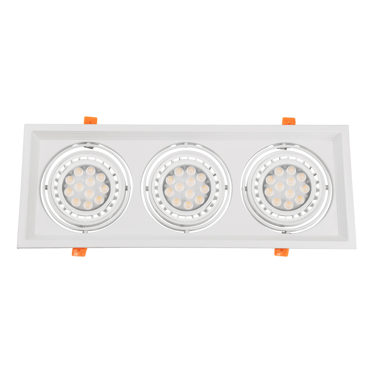 GloboStar® VITA 77856 Χωνευτό Κινούμενο Τριπλο Τετράγωνο Σποτ Οροφής για Λάμπα AR111 – IP20 – Χυτό Αλουμίνιο – M48.7 x Π18.7 x Y5.5cm – Λευκό – 5 Χρόνια Εγγύηση