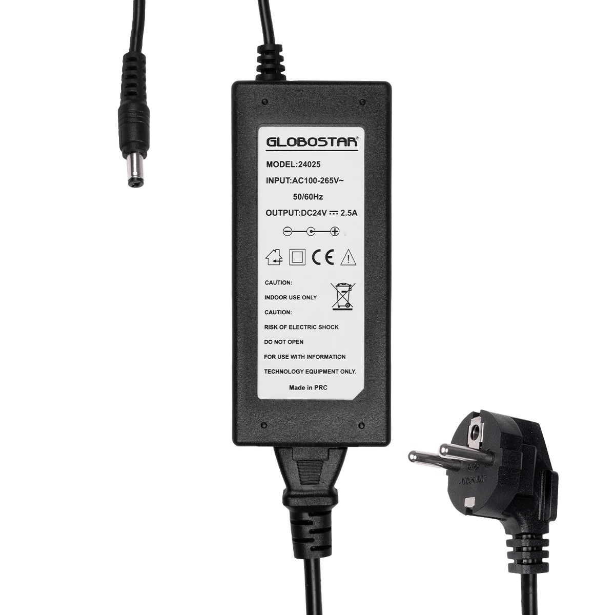 GLOBOSTAR® VOLTIX GLB-107-0007 Τροφοδοτικό/Μετασχηματιστής Class II SELV 60W 2.5A AC 220-240V σε DC 24V IP20 – Μαύρο Ματ – Μ11.5 x Π5 x Υ3.2cm – 3 Χρόνια Εγγύηση