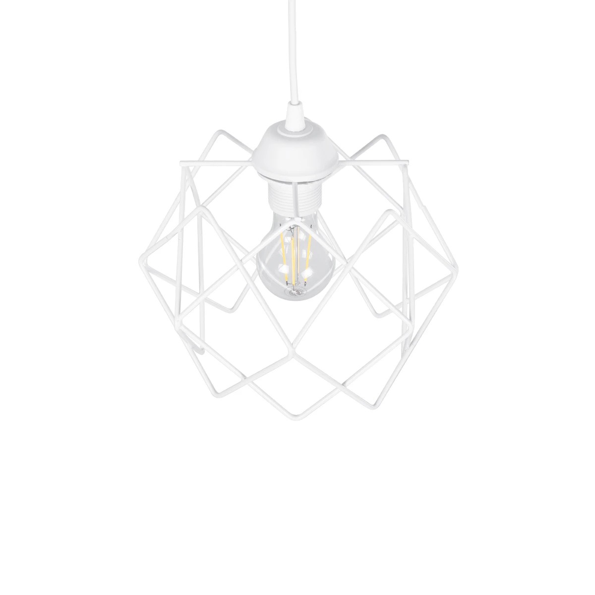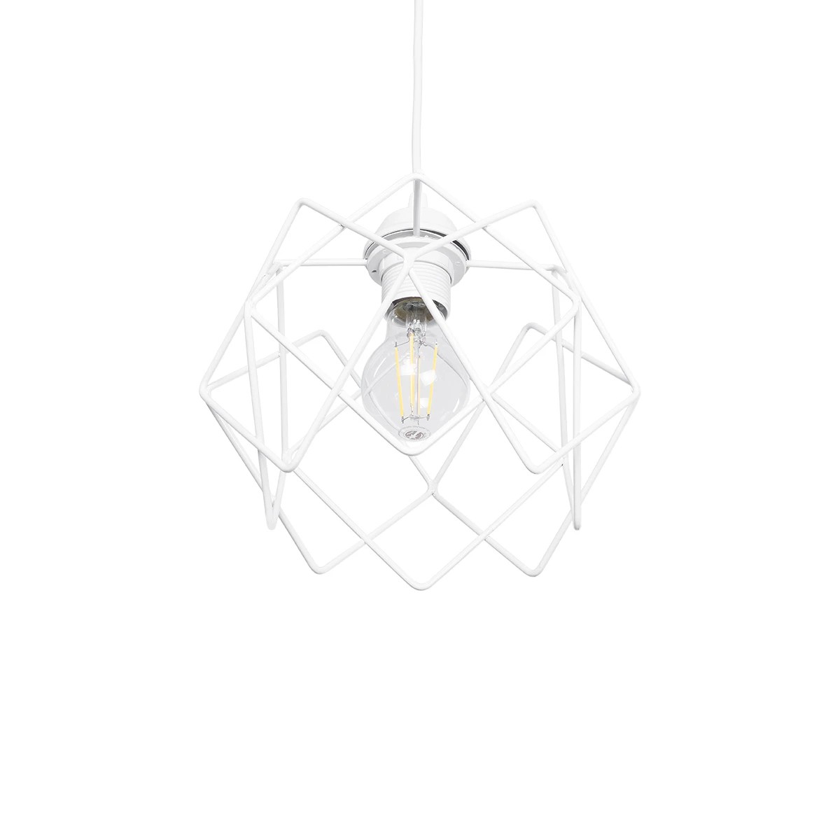 GloboStar® VORTEX 203-0001 Mοντέρνο Κρεμαστό Φωτιστικό Πλέγμα Μονόφωτο 1 x E27 IP20 Λευκό Μέταλλο – Μ23.5 x Π23.5 x Υ20cm
